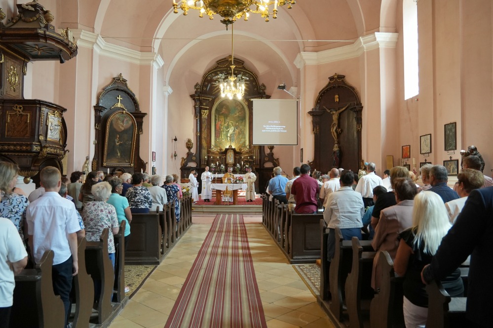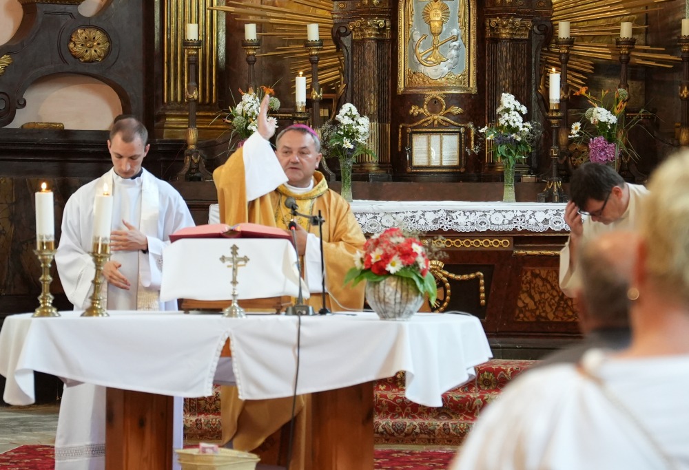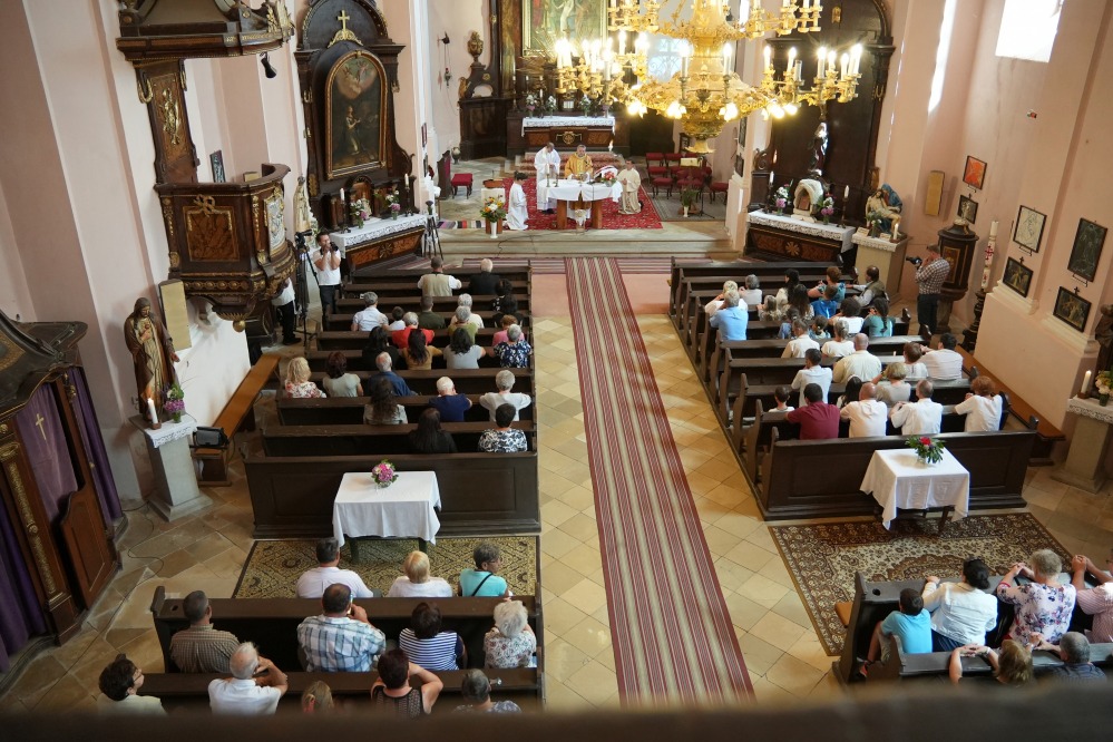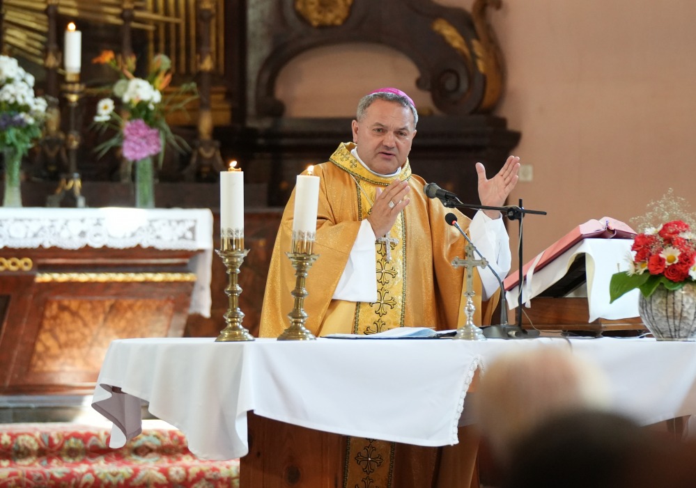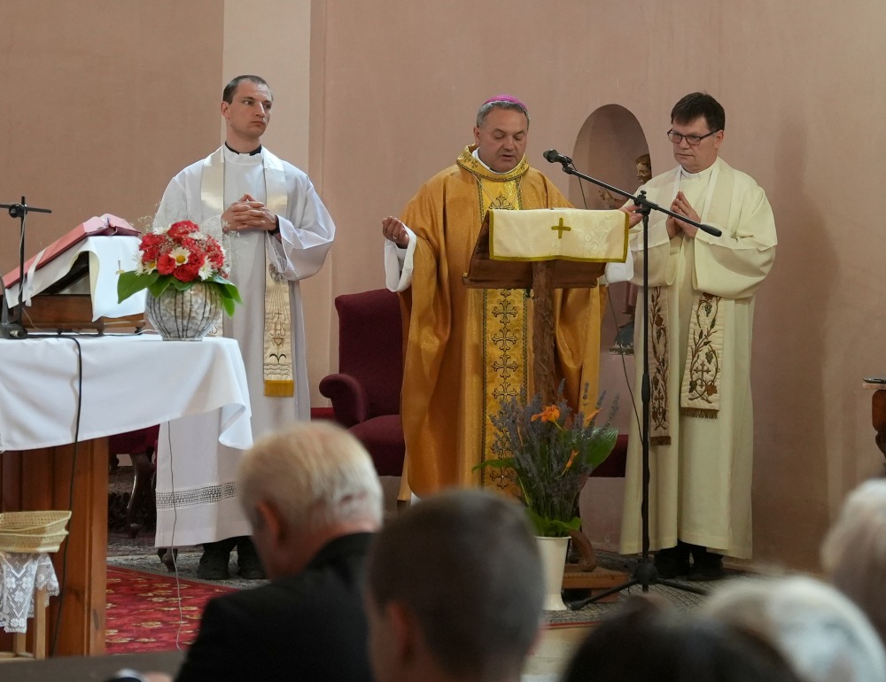 A múlt történéseire való emlékezés mindig tanulságos a jelenre nézve – kezdte szentbeszédét a főpásztor, immár a szentmisében. Ahogy a 13. századtól a családokban megélt hit egyszerűségben, szegénységben megtartotta, sőt felvirágoztatta az itteni közösséget, ugyanúgy ezen az úton juthatunk előrébb ma is. Ahogy a család is csak az asztalközösségben képes megmaradni, élni, ugyanúgy az egyházközségnek is szüksége van az eucharisztikus asztalközösségre. Ennek a kettőnek a fellazítása vezet oda, hogy mindent elveszítünk. A létszám fogyása mellett a fő nehézség, hogy ebben a folyamatban elvesznek a kapcsolataink, aminek következtében elvész az ember – figyelmeztetett Felföldi László. Ott érezhetjük magunkat otthon, ahol gyógyulnak a sebeink. Mindenki elszenved sebesüléseket, amik viszont a családban, a szerető elfogadásban gyógyulhatnak csak meg.