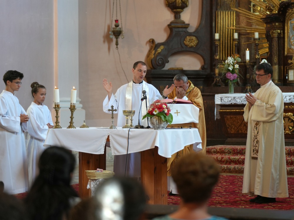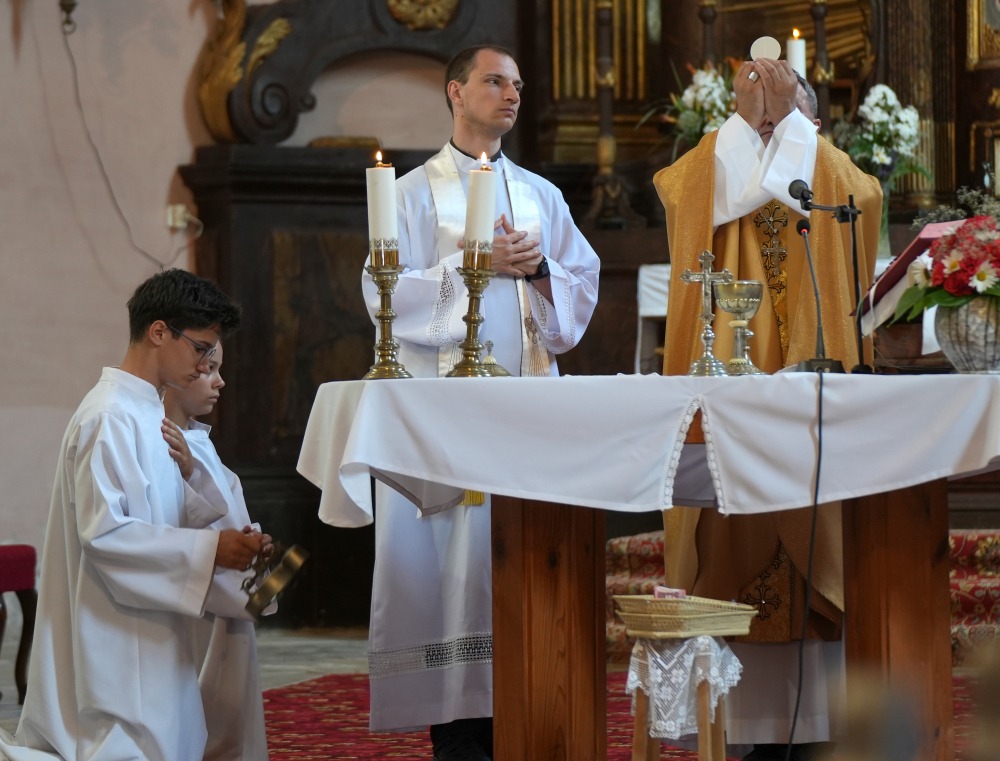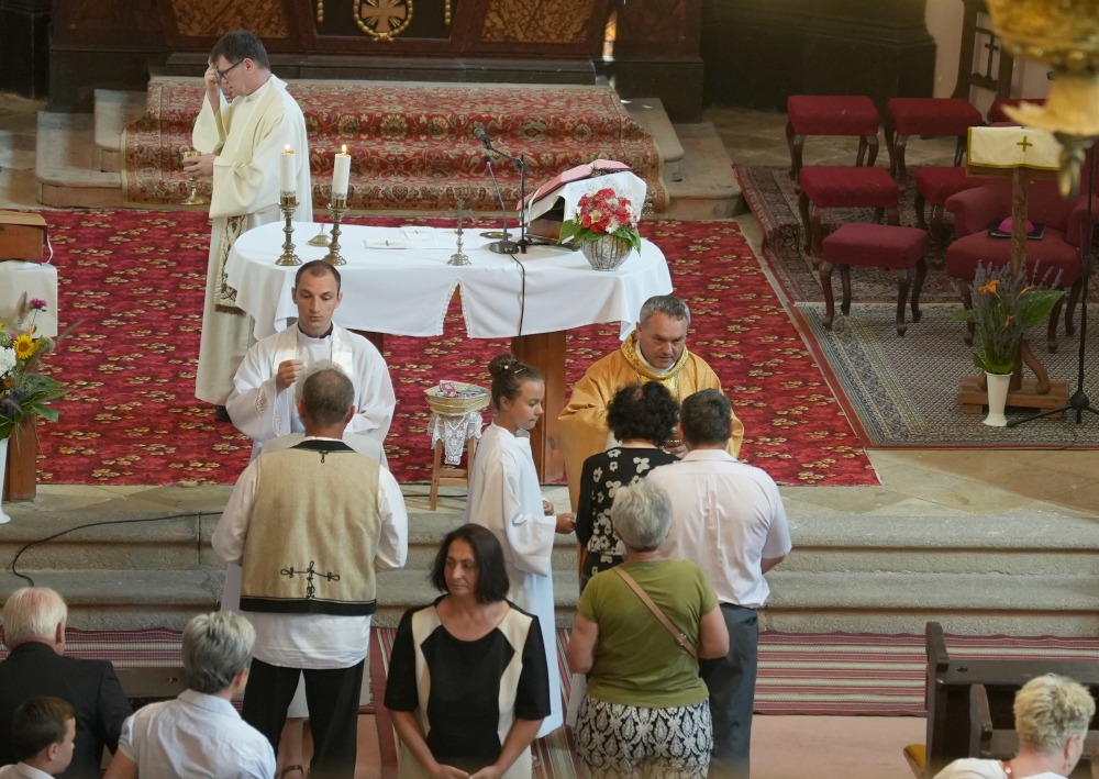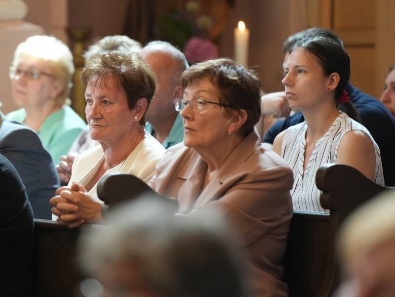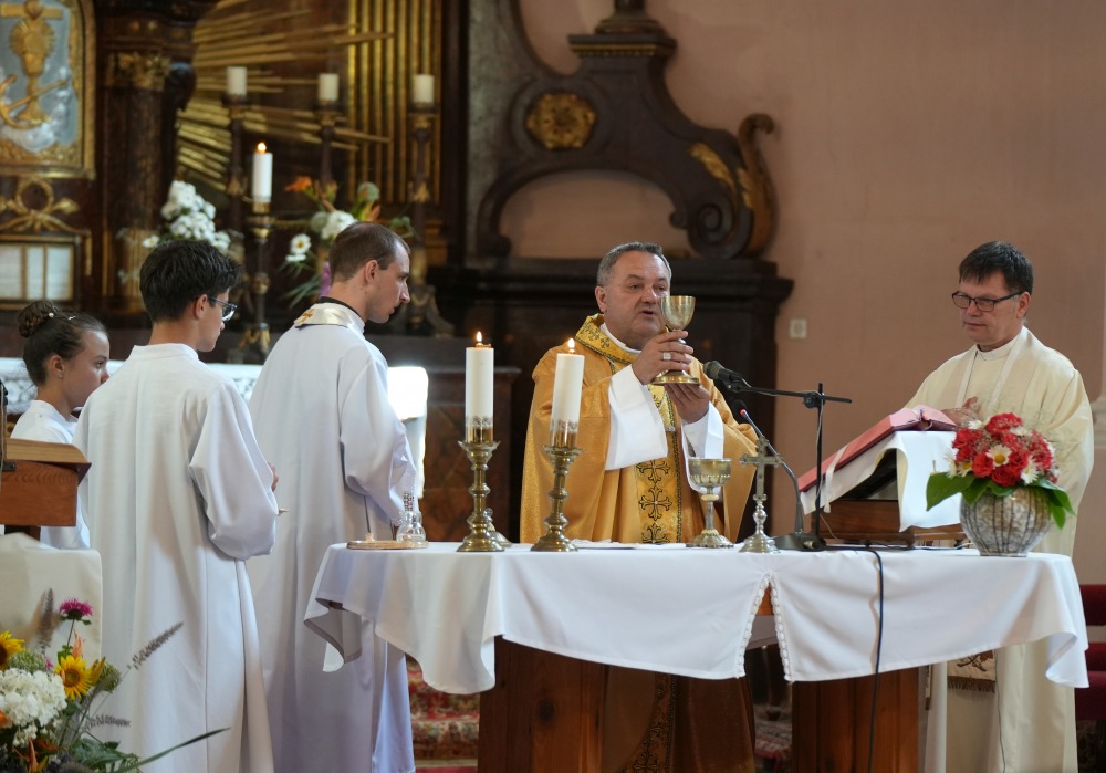 A múlt történéseire való emlékezés mindig tanulságos a jelenre nézve – kezdte szentbeszédét a főpásztor, immár a szentmisében. Ahogy a 13. századtól a családokban megélt hit egyszerűségben, szegénységben megtartotta, sőt felvirágoztatta az itteni közösséget, ugyanúgy ezen az úton juthatunk előrébb ma is. Ahogy a család is csak az asztalközösségben képes megmaradni, élni, ugyanúgy az egyházközségnek is szüksége van az eucharisztikus asztalközösségre. Ennek a kettőnek a fellazítása vezet oda, hogy mindent elveszítünk. A létszám fogyása mellett a fő nehézség, hogy ebben a folyamatban elvesznek a kapcsolataink, aminek következtében elvész az ember – figyelmeztetett Felföldi László. Ott érezhetjük magunkat otthon, ahol gyógyulnak a sebeink. Mindenki elszenved sebesüléseket, amik viszont a családban, a szerető elfogadásban gyógyulhatnak csak meg.