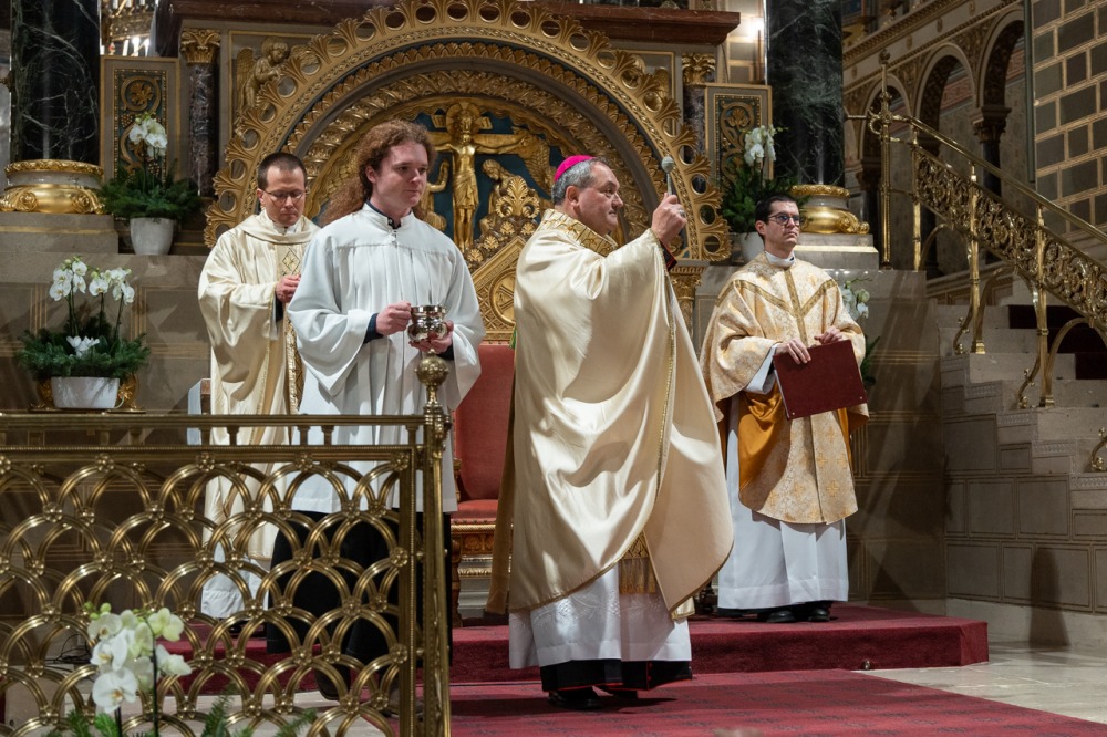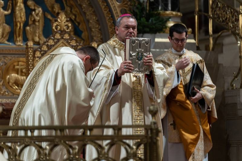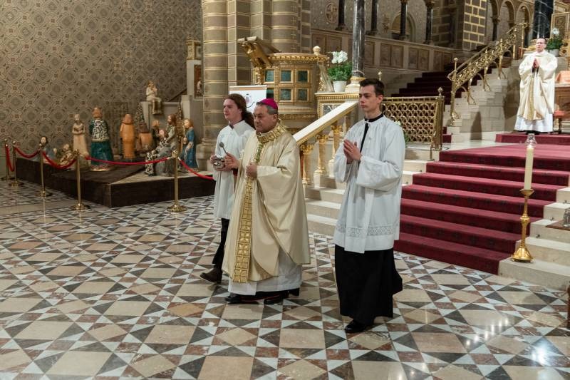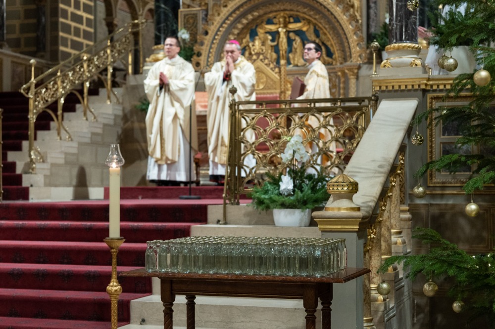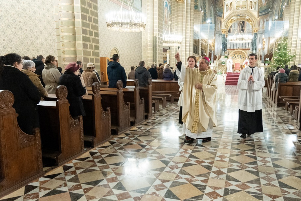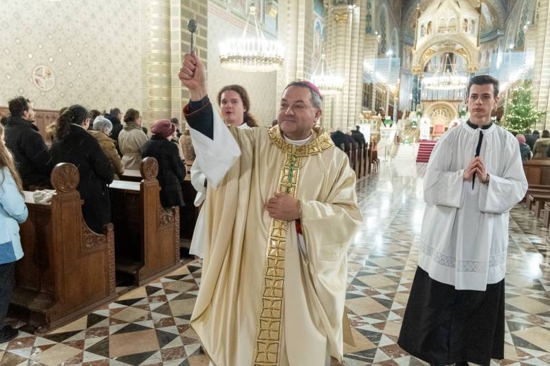 A Katolikus Egyház a II. Vatikáni Zsinat rendelkezései szerint január 6-án ünnepli Urunk megjelenésének főünnepét, amikor a templomokban Jézus Jordánban való keresztségére emlékezve vízszentelést végeznek, az evangélium pedig a napkeleti bölcsek látogatását idézi fel. Vízkereszt ünnepnapján este a pécsi székesegyházban Felföldi László püspök celebrált szentmisét és végezte el a vízszentelés szertartását.