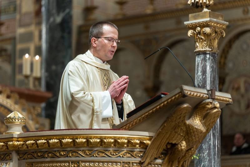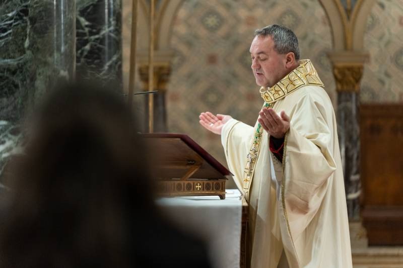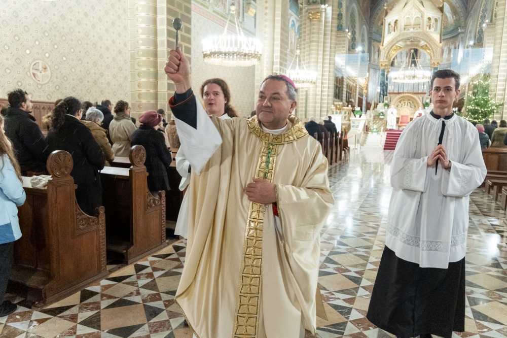 Ezt követően a püspök elvégezte a vízszentelés szertartását, majd a szentmise homíliájában a napkeleti bölcsek látogatásának nekünk szóló négy nagy üzenetére figyelmeztetett.