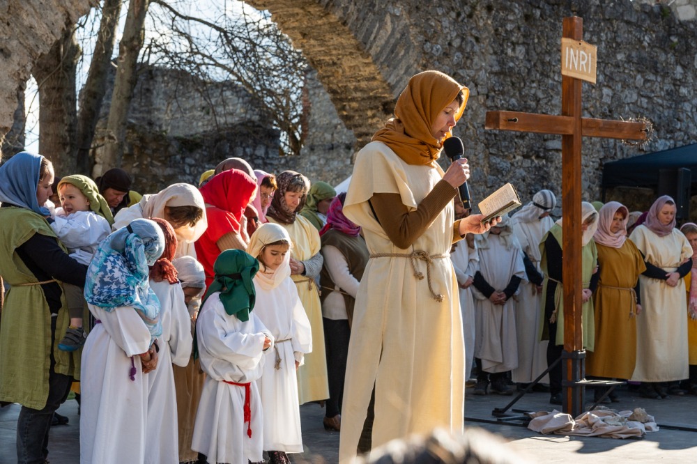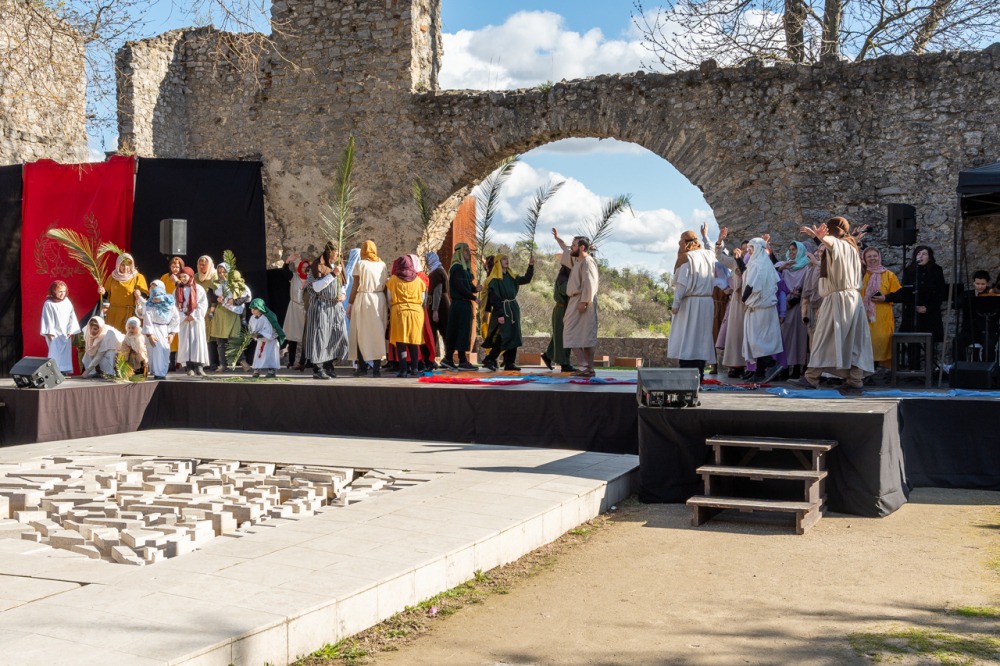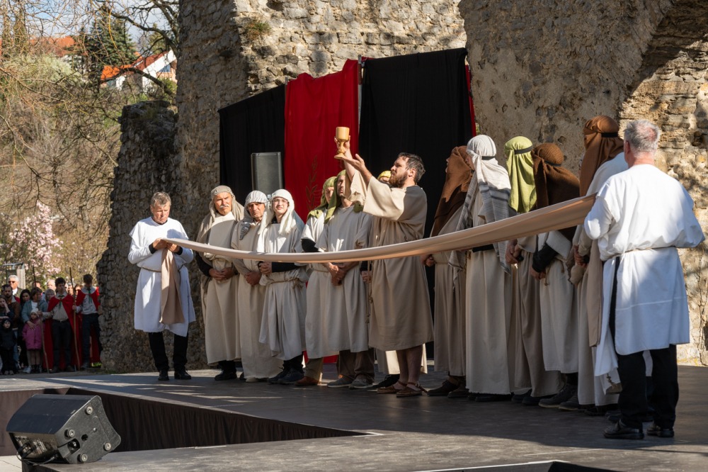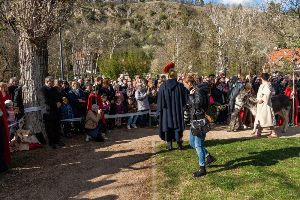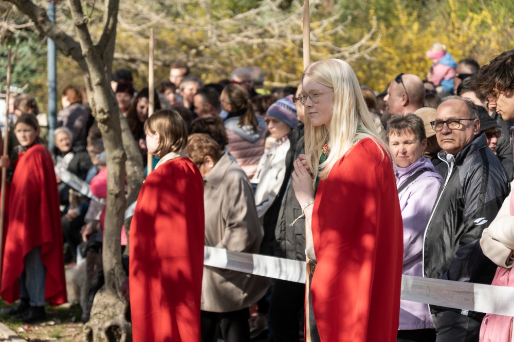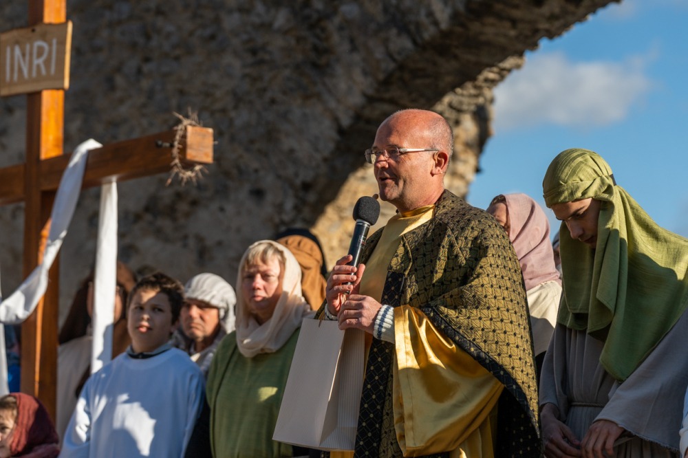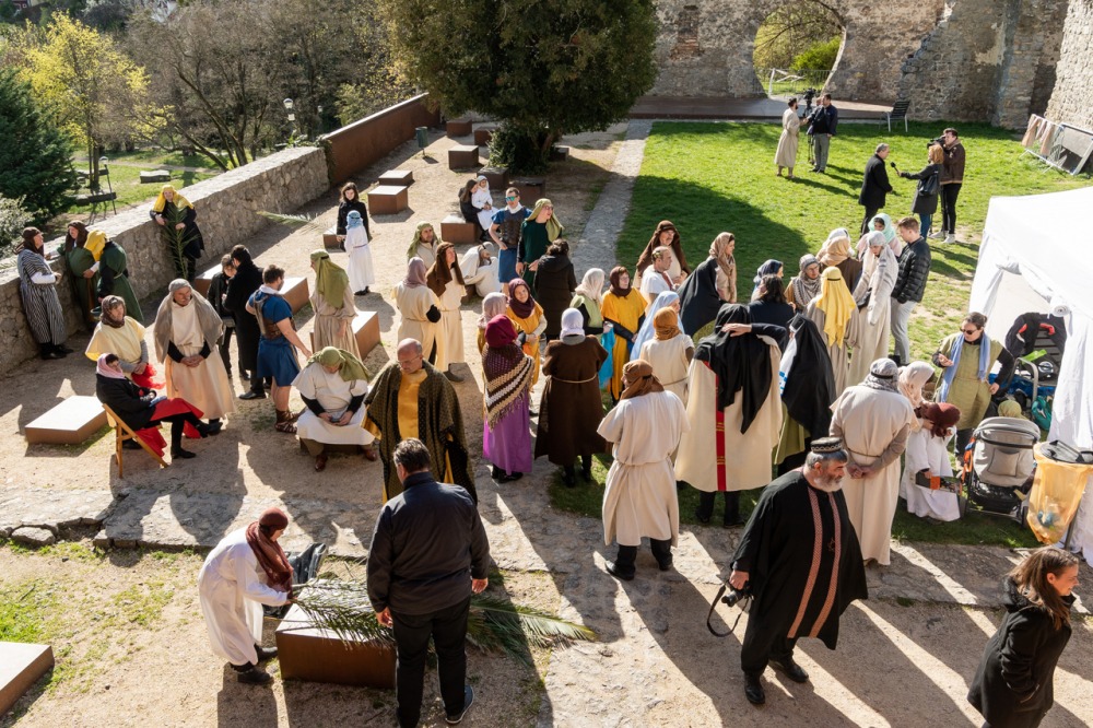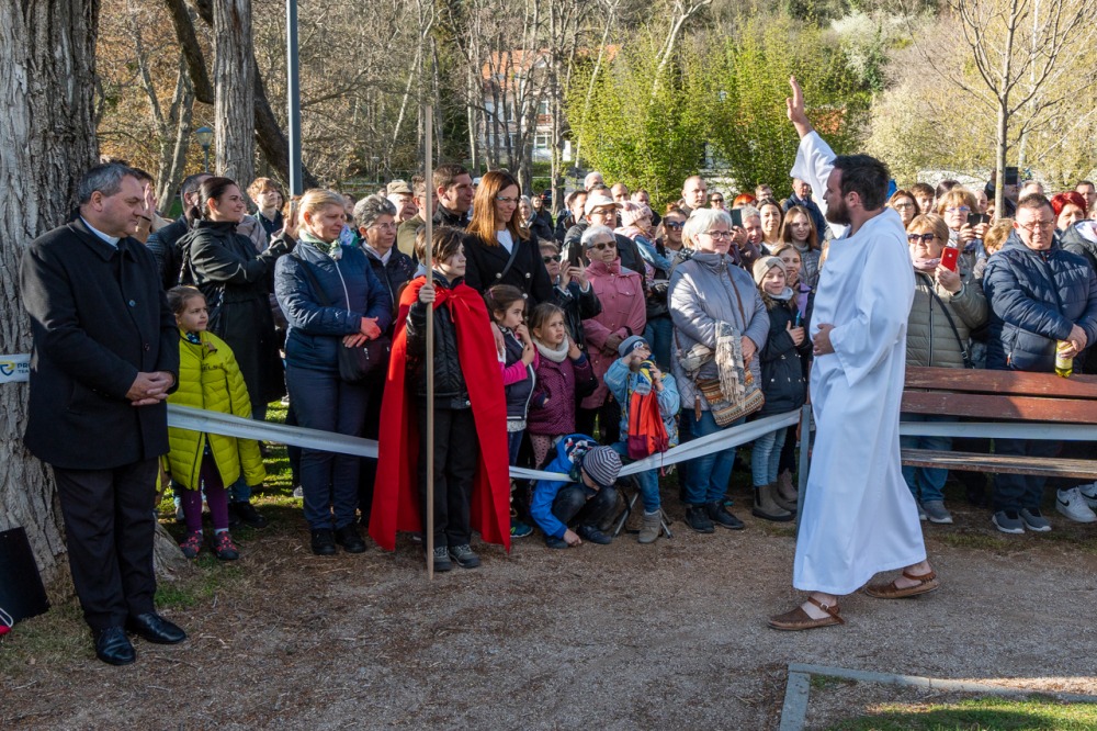 A jeruzsálemi bevonulástól Jézus kereszthaláláig és feltámadásig mutatták be a nagyhét eseményeit március 24-én, virágvasárnap a látogatókkal és érdeklődőkkel megtelt pécsi Tettye-parkban, ahol Felföldi László pécsi megyéspüspök köszöntötte a megjelenteket.