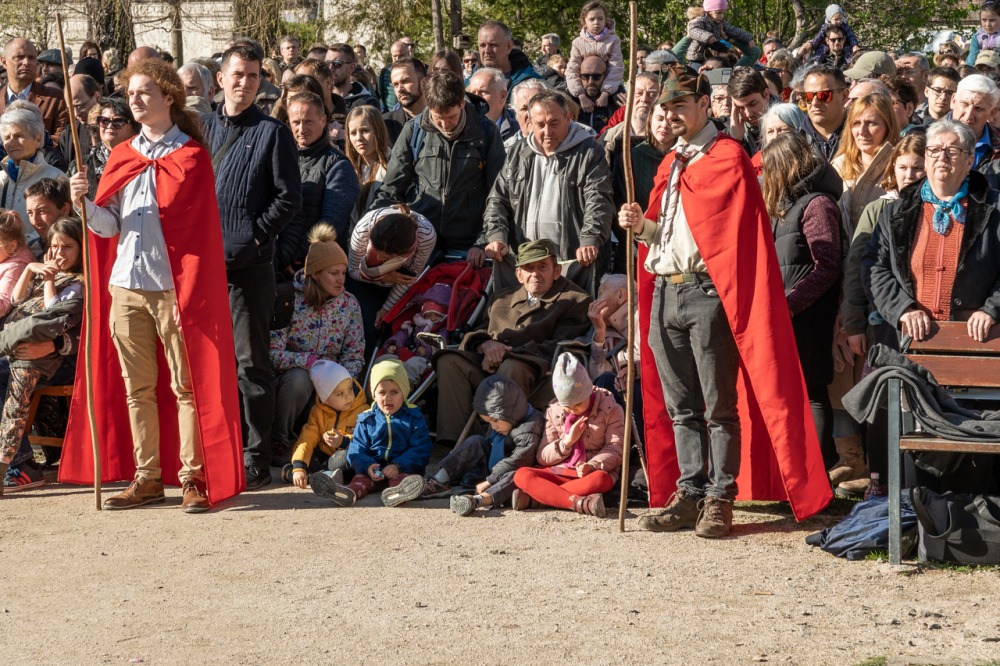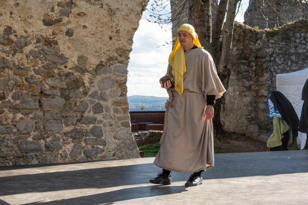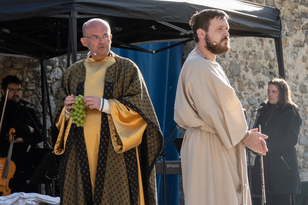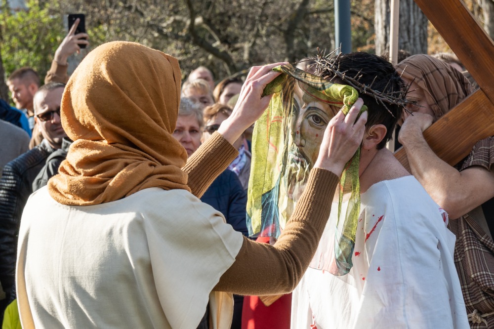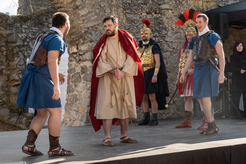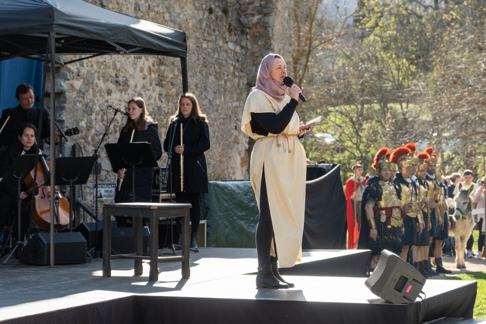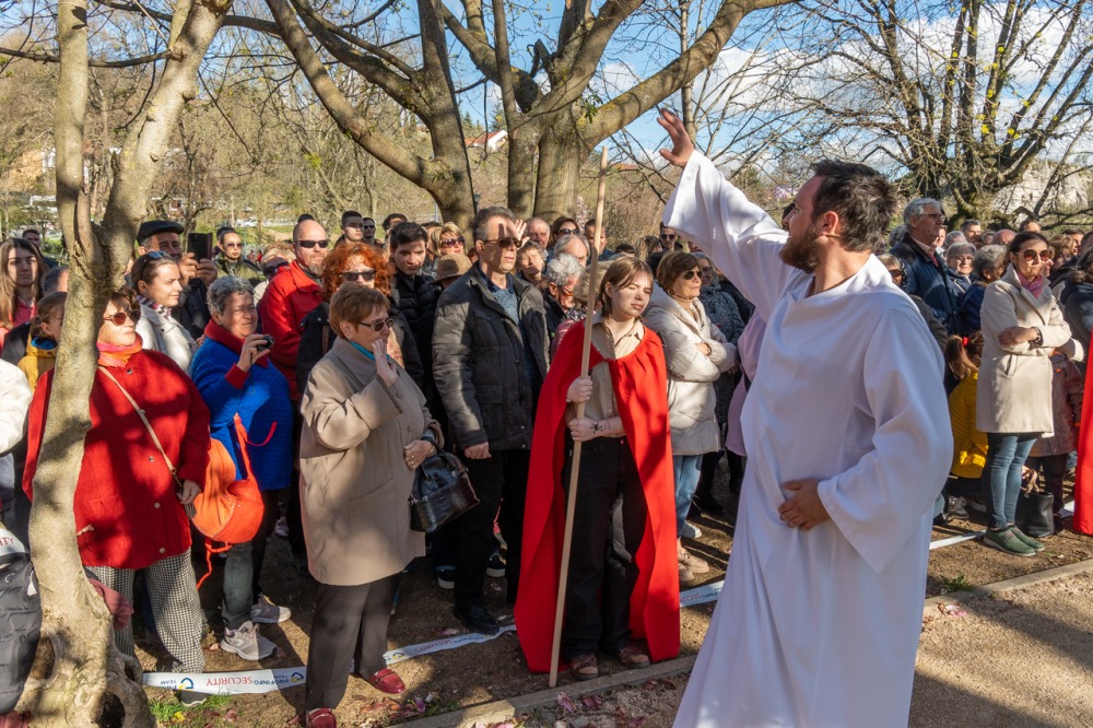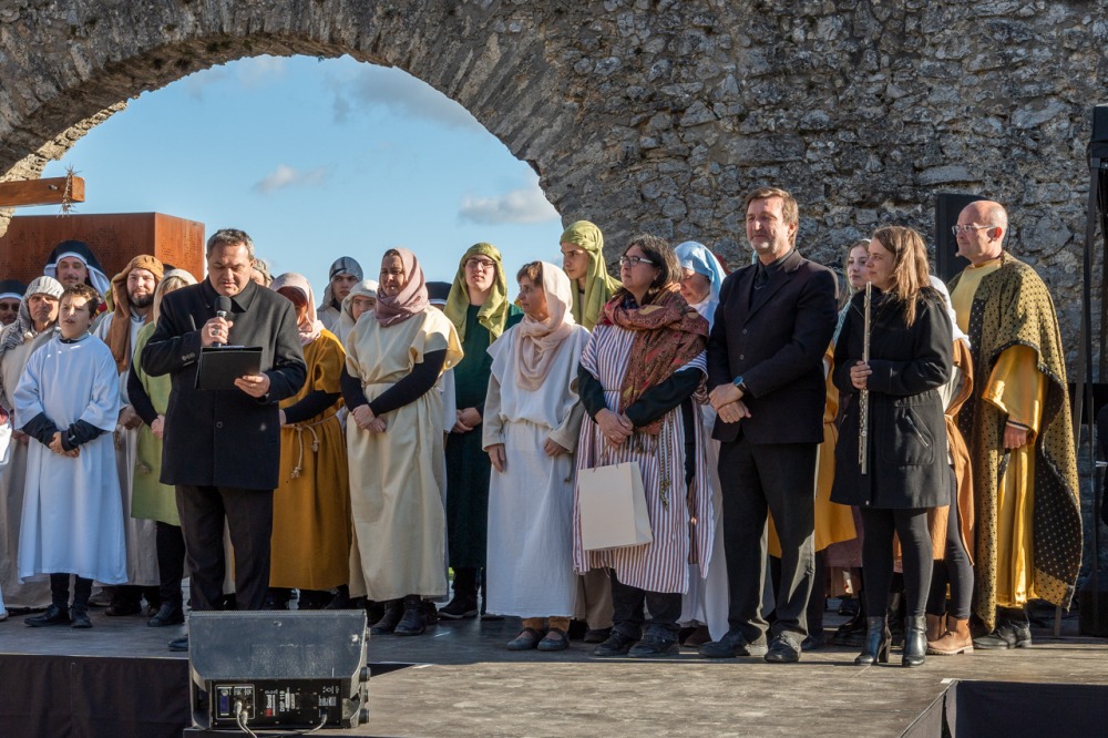 A jeruzsálemi bevonulástól Jézus kereszthaláláig és feltámadásig mutatták be a nagyhét eseményeit március 24-én, virágvasárnap a látogatókkal és érdeklődőkkel megtelt pécsi Tettye-parkban, ahol Felföldi László pécsi megyéspüspök köszöntötte a megjelenteket.