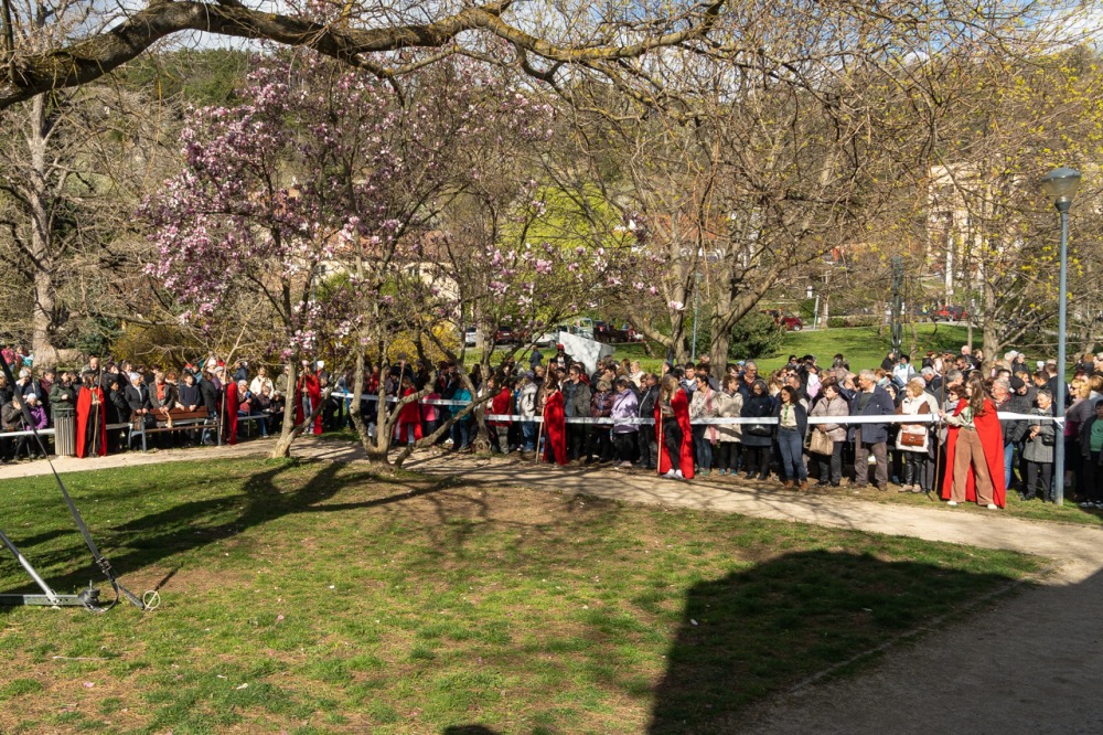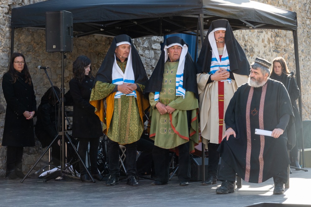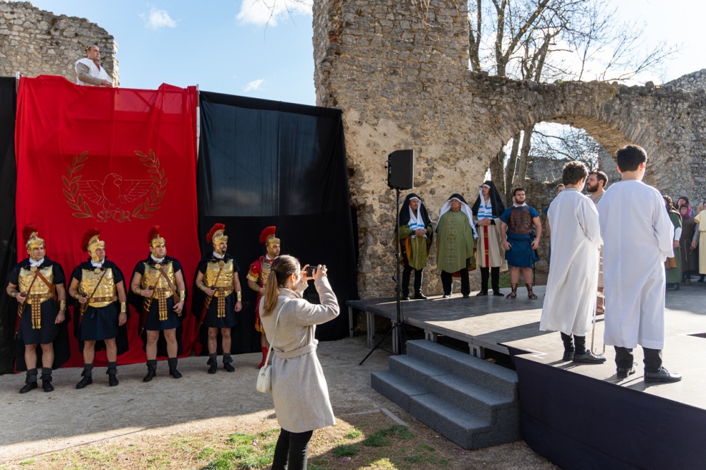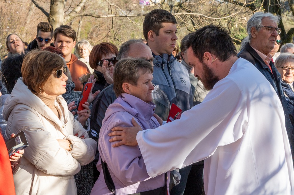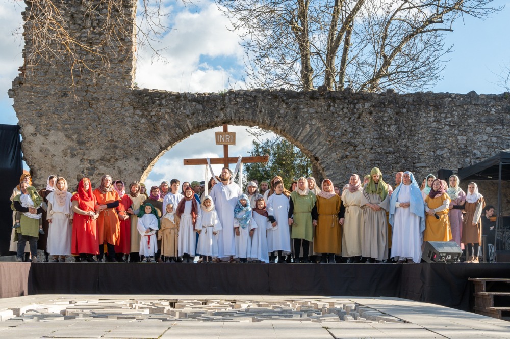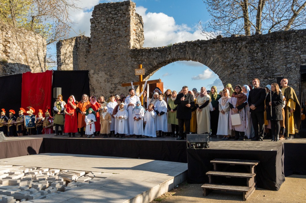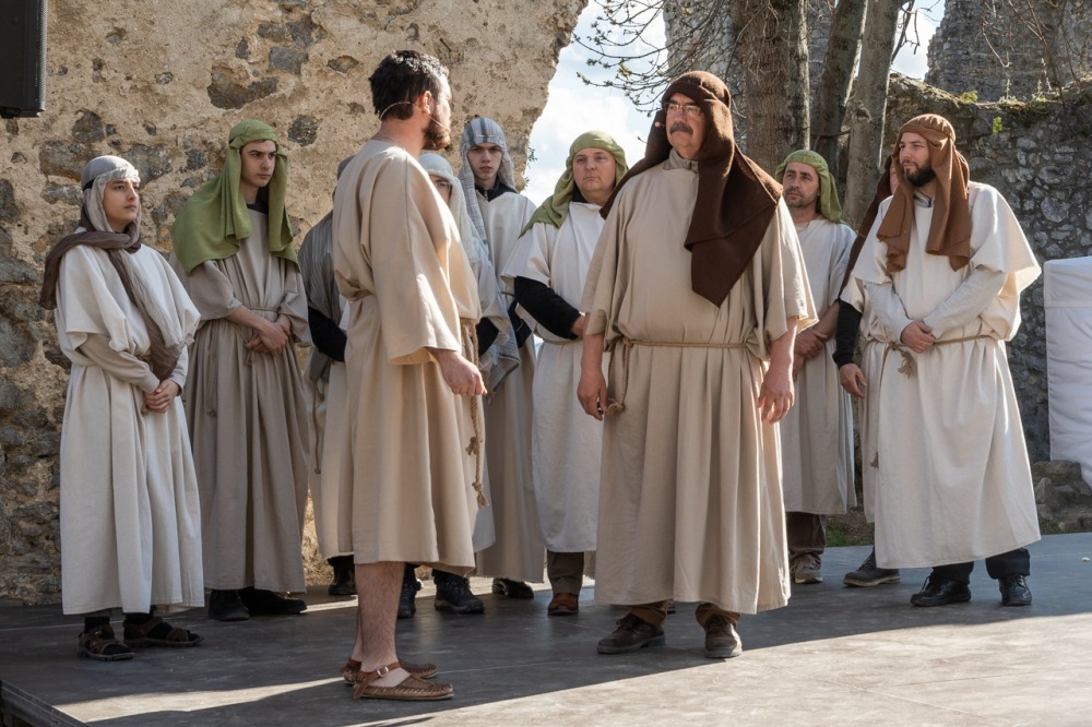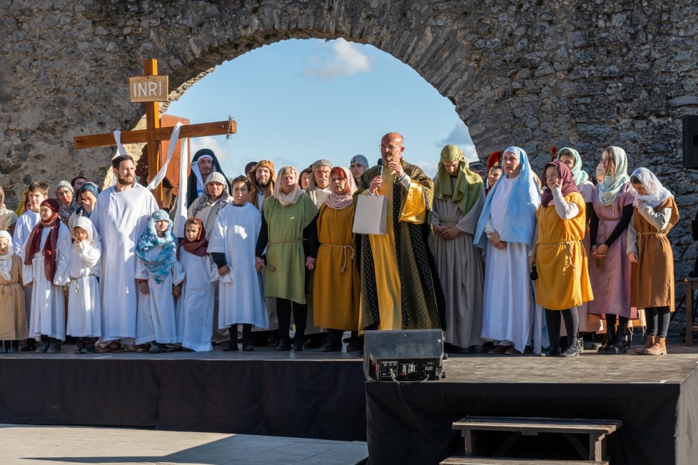 A jeruzsálemi bevonulástól Jézus kereszthaláláig és feltámadásig mutatták be a nagyhét eseményeit március 24-én, virágvasárnap a látogatókkal és érdeklődőkkel megtelt pécsi Tettye-parkban, ahol Felföldi László pécsi megyéspüspök köszöntötte a megjelenteket.