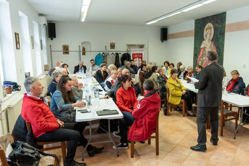A Pécsi Egyházmegyei Karitász pécsi központjában megrendezett találkozó célja a közösségépítés mellett az aktuális segélyprogramokról történő szakmai iránymutatás volt. Elsőként Besenczi Zsolt pécsi karitászigazgató ismertette a Pécsi Egyházmegyei 39 helyszínén működő szeretetszolgálat 760 fő önkéntesével 2024-ben végzett munkájuk összesített eredményeit.