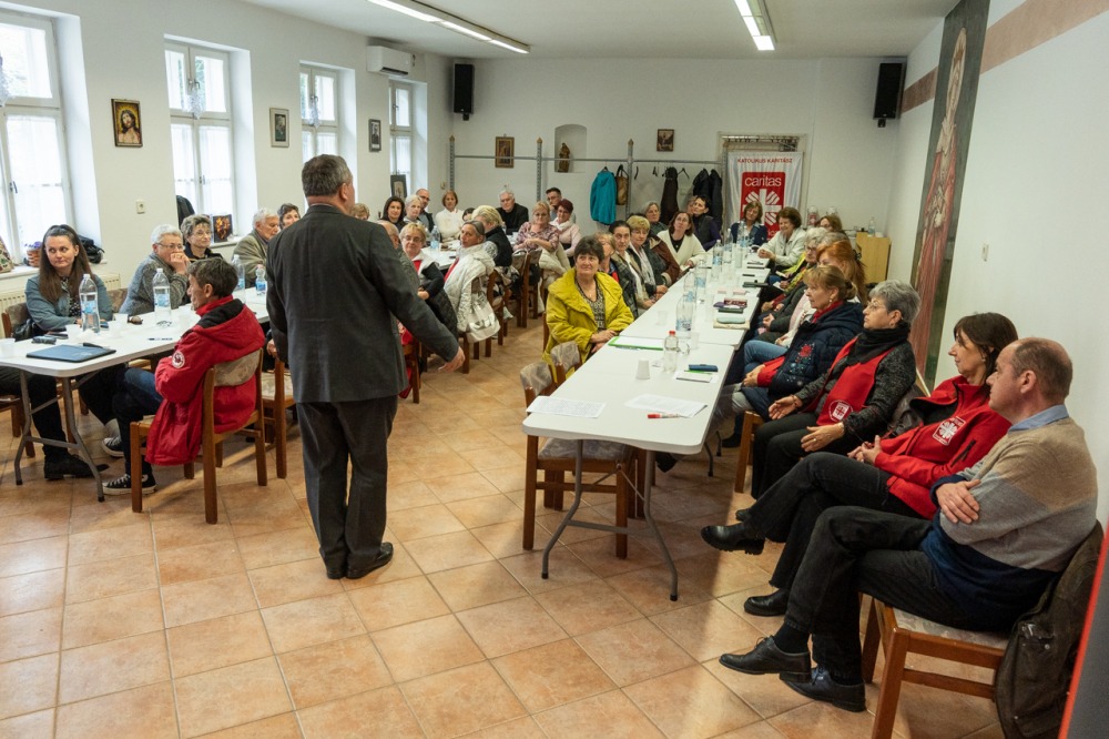 A 2024-es év mérlegelését követően a találkozón Hideg József szociális ágazati munkatárs előadásában a karitász szolgálatban megjelenő veszélyhelyzetekre tért ki, melyek a mindennapokban nehezíthetik a szolgálat eredményességét. A résztvevők aktív bevonásával több olyan helyzetet, szituációt gyűjtött csokorba, amelyekkel az önkéntesek a mindennapokban találkozhatnak, és amelyek kiküszöbölésére megoldási javaslatokat is tettek.