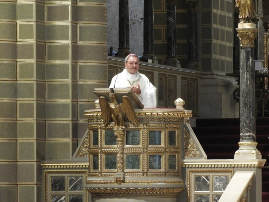 A főpásztor szentbeszédében az Eucharisztiáról elmélkedett. Hangsúlyozta, mindnyájunknak az Oltáriszentségben kell keresnünk az erőt és a biztonságot az életünkben, melyben Jézus az erejét, mint tápláló kenyeret hagyott ránk. Az Eucharisztia jelenti számunkra a kapcsolatot az életünkben vele.
