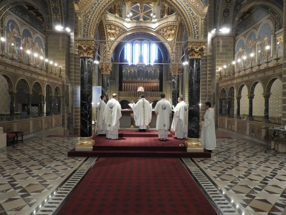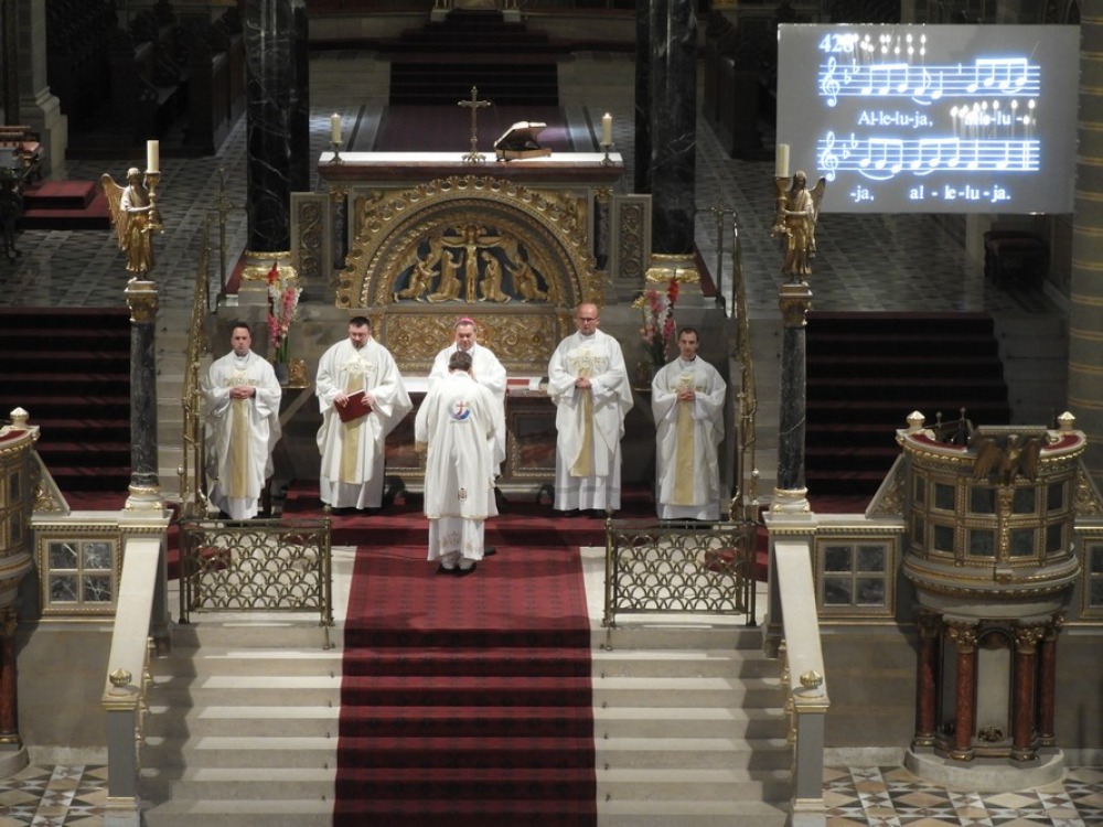 A hálaadó szentmisét Felföldi László megyéspüspök mutatta be iskolalelkészek, Kutas Attila, Dallos Tamás, Kovács József és Lápossy Péter koncelebrálásával.