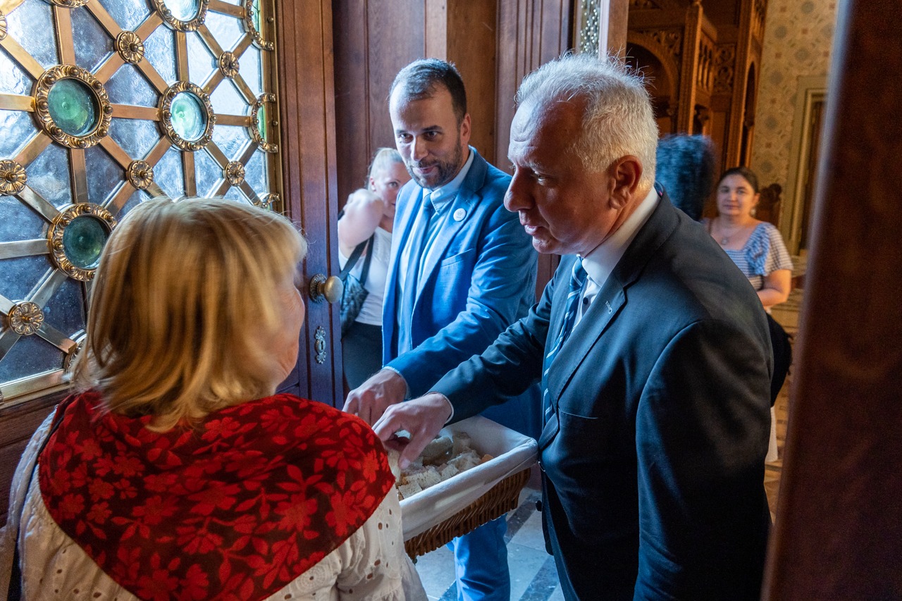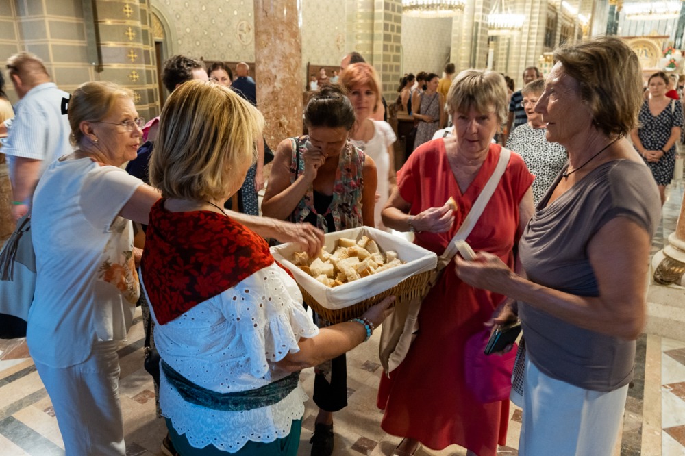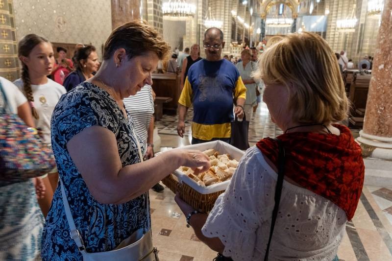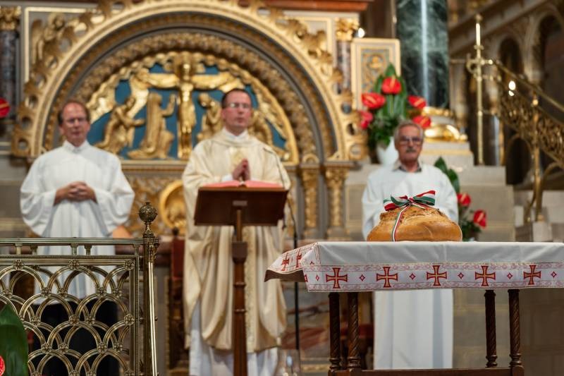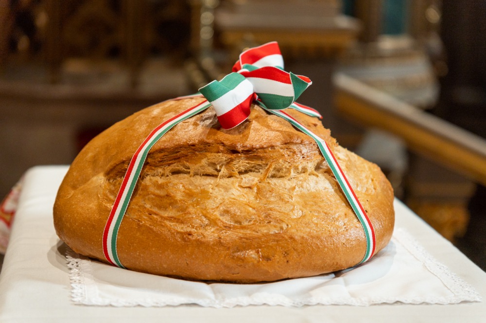 A Szent István király főünnepén bemutatott szentmisét követően a pécsi székesegyházból kilépve mindenki vehetett egy darabkát a városi ünnepség keretében megáldott kenyérből.