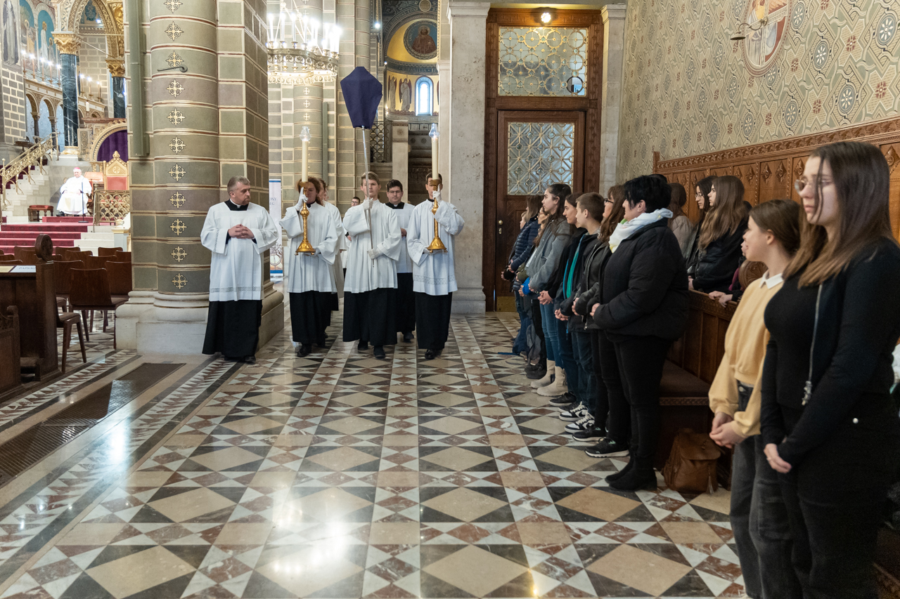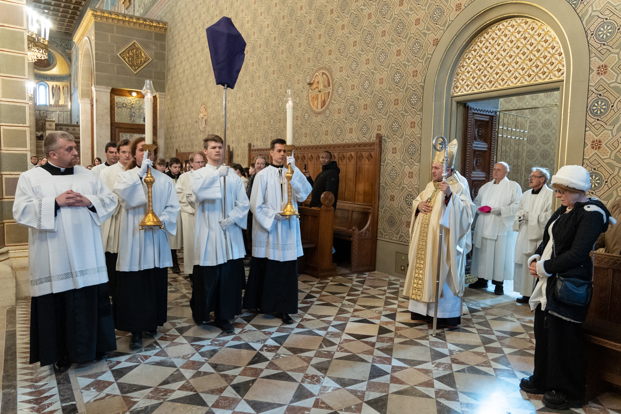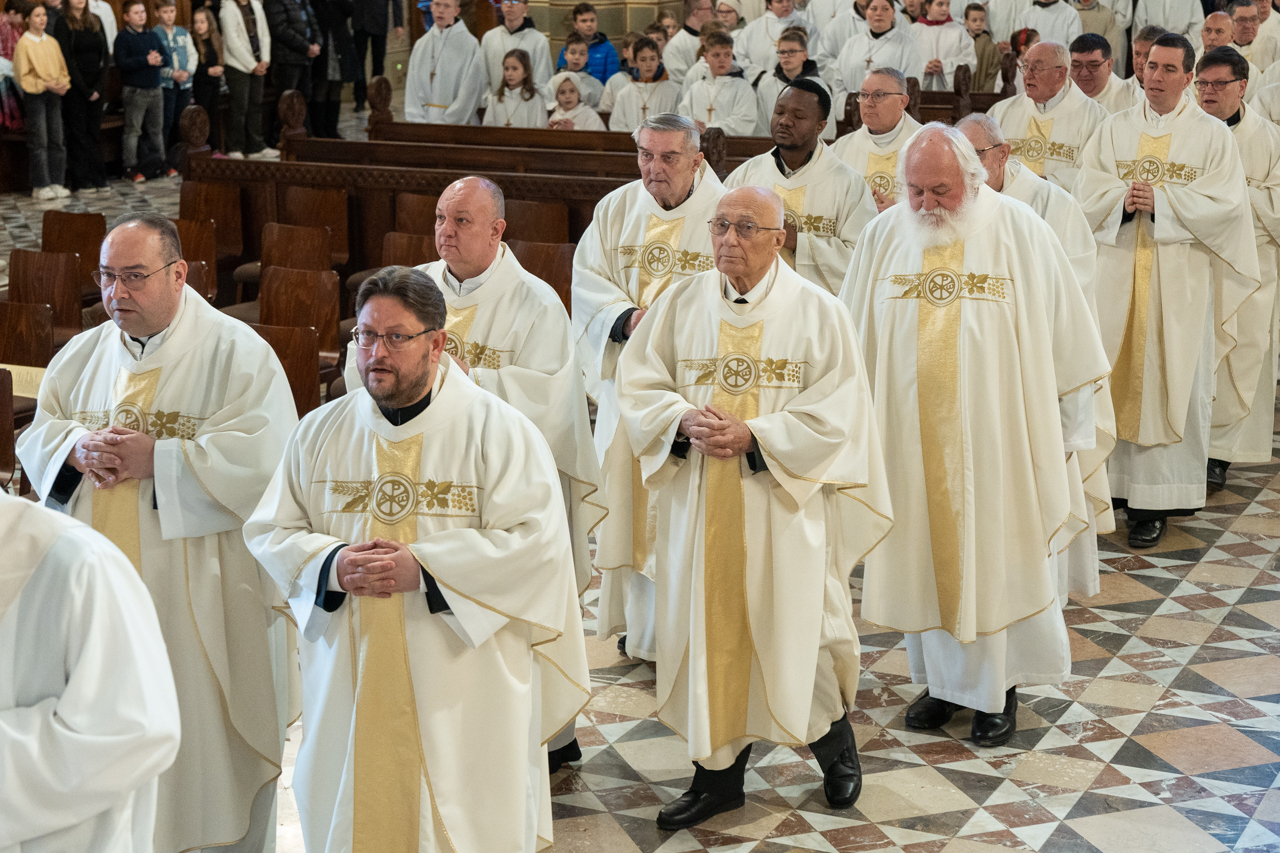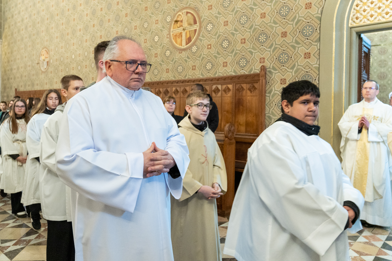 A liturgián részt vettek a Pécsi Egyházmegye diakónusai, papnövendékei, az egyházközségek ministránsai és a hívek közössége.