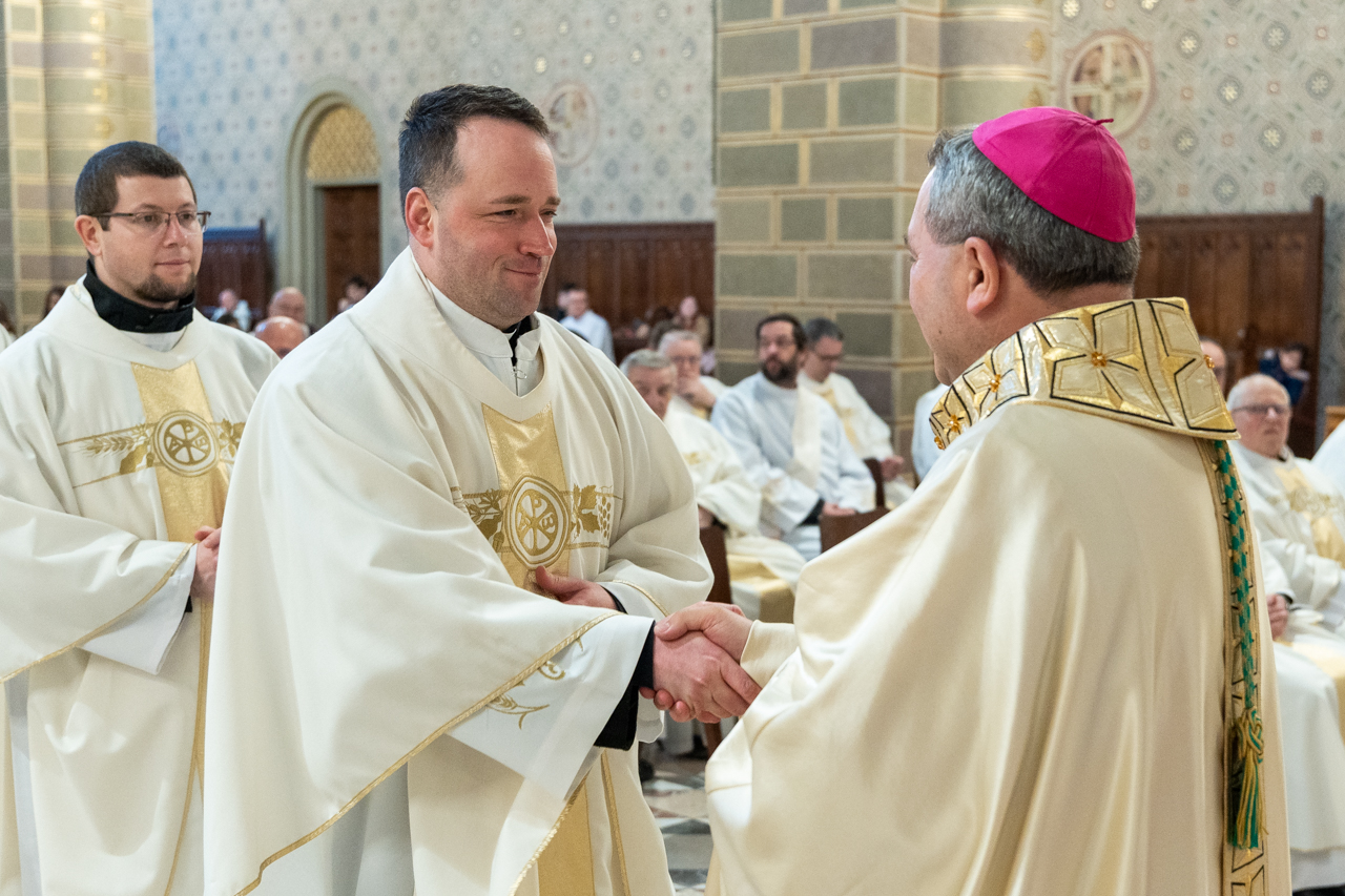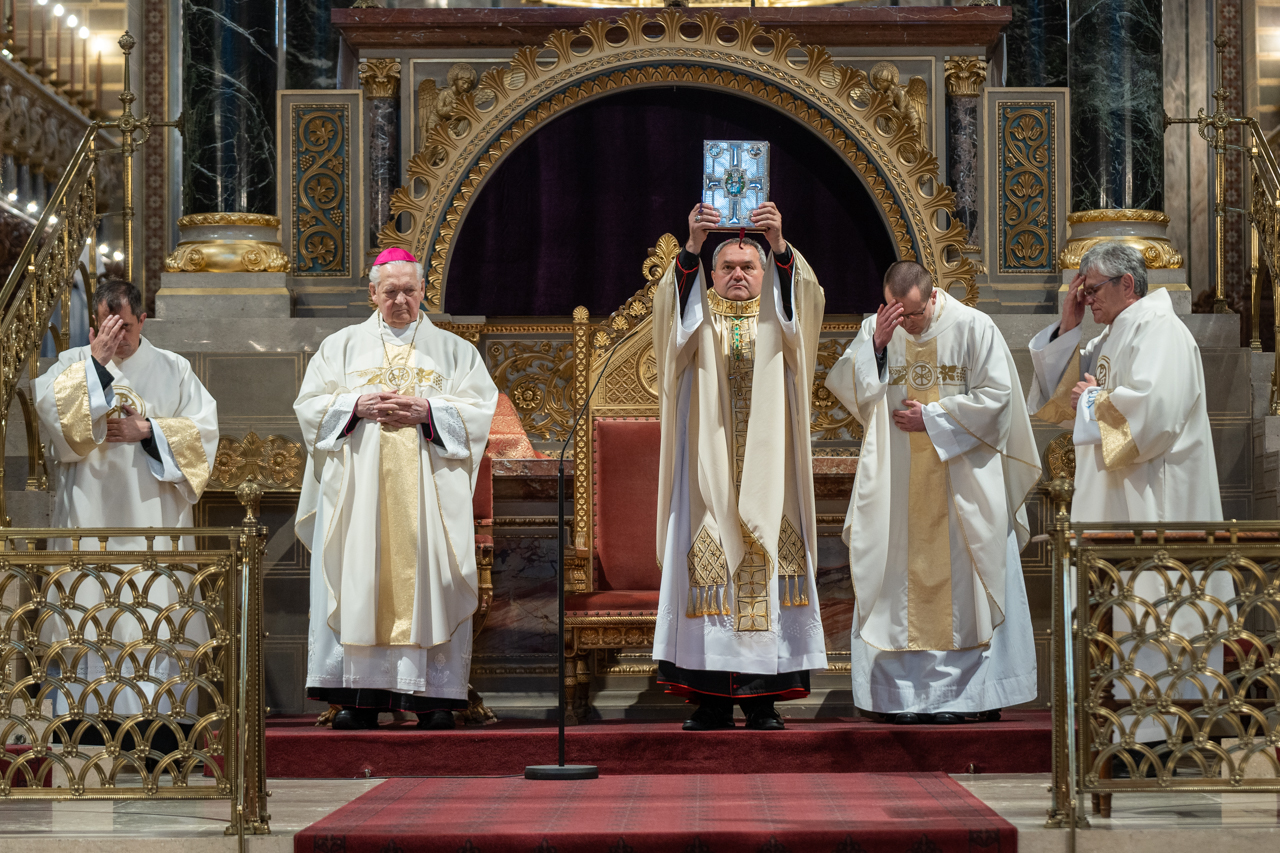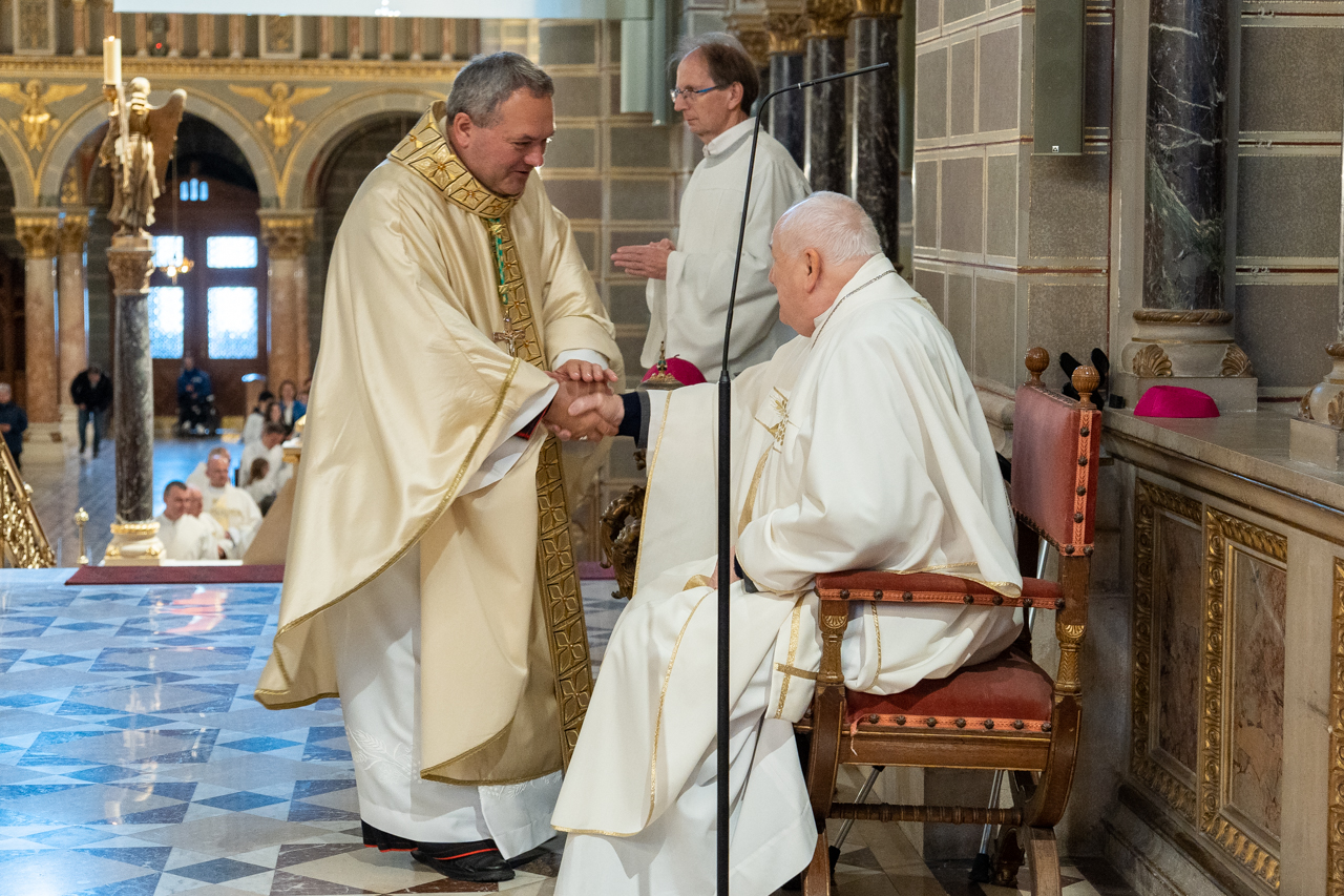 Majd így folytatta: „Isten Fia meghívott tanítványának, papjának választott ki bennünket a hívek közösségének szolgálatára, az evangélium hirdetésére. Újra meg újra kézbe veszi megkeményedett, a papi szolgálatban sokszor megsebezett szívünket, hogy megértsük és megújuljon bennünk nekünk szóló üzenete.”