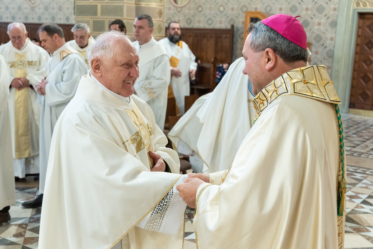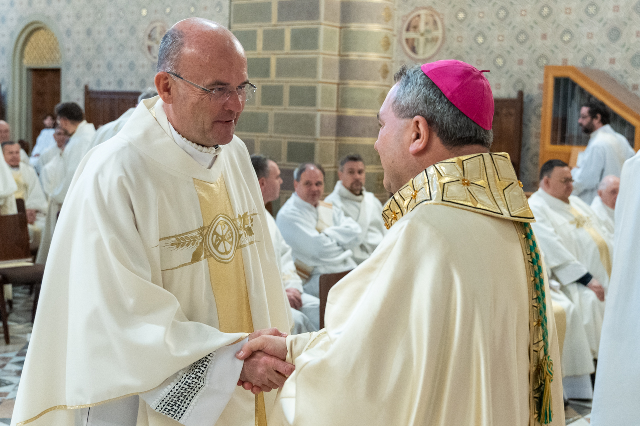 „Különleges ajándék, hogy szinte mindnyájan eljöttetek ide. Ez a nap legyen a megerősödésünk, kapcsolatunk megújulása egymással és a Mesterrel” – zárta szavait a főpásztor, megköszönve a papság jelenlétét és testvéri szolgálatát.