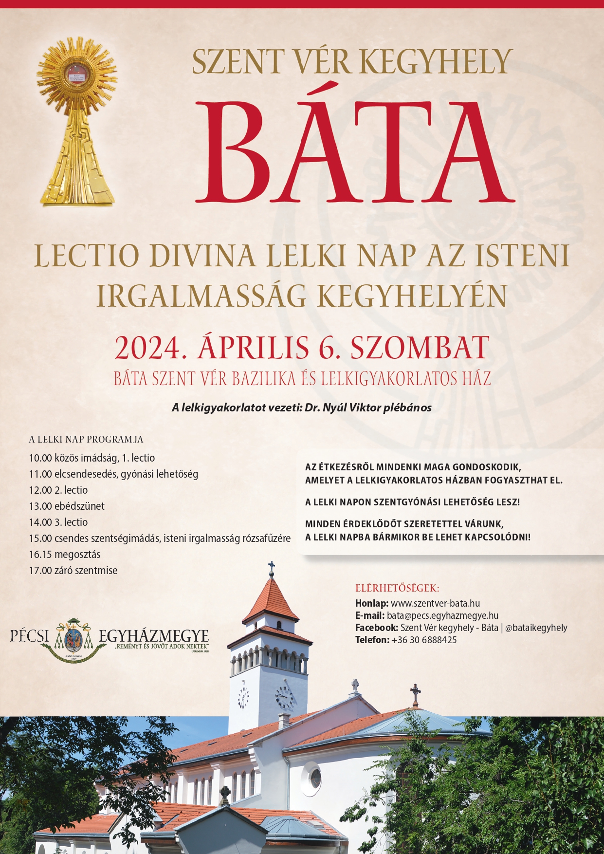A Szentírás imádságos olvasására invitáló lelkinapot hirdetnek április 6-ra a bátai Szent Vér Katolikus Lelkigyakorlatos Házba.