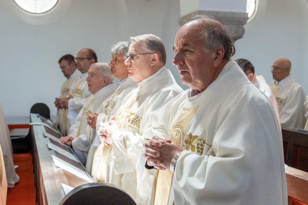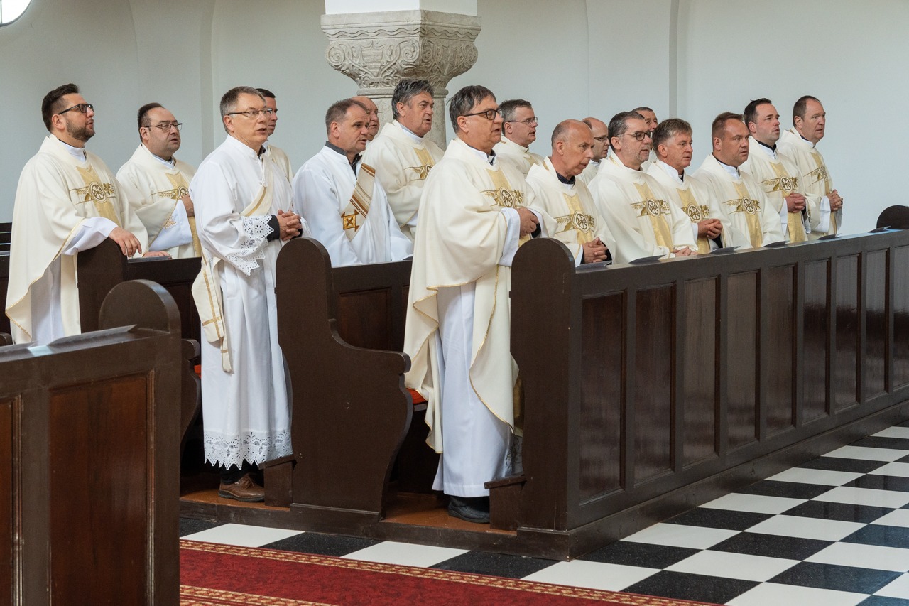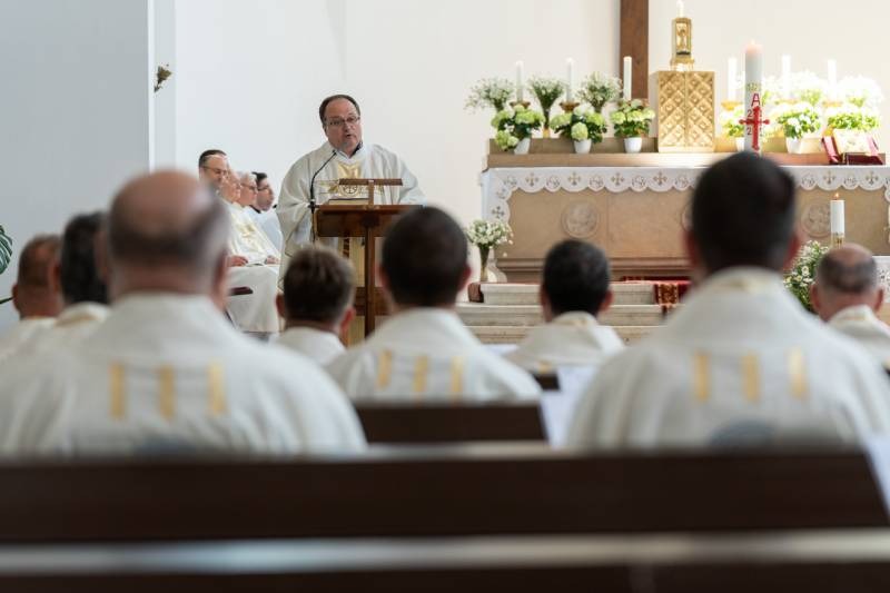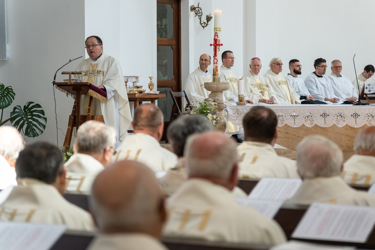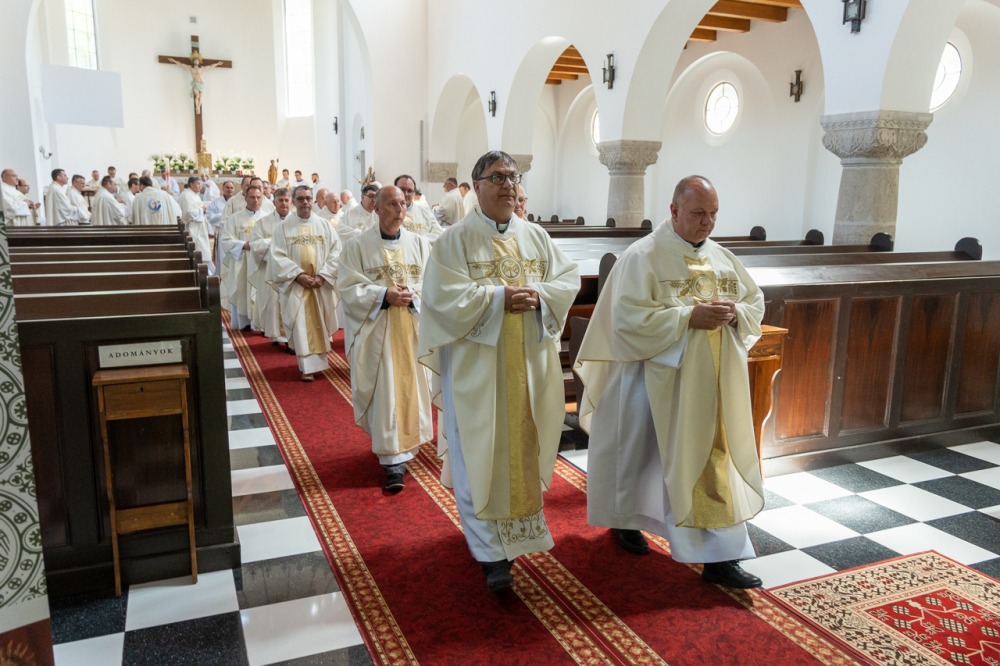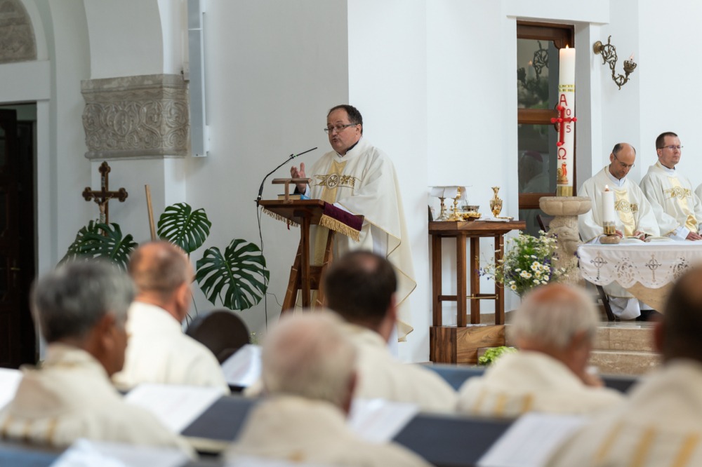A találkozó szentmisével kezdődött a bátai bazilikában, melyben Felföldi László köszöntötte paptestvéreit. A püspök beszédében kiemelte, azért fontos ez a találkozás, mert a papok számára az ünnepek egyben minden alkalommal szolgálatot is jelentenek, mely – ahogy fogalmazott – képes megsemmisíteni az ünnepi érzést, hangulatot és élményt, ugyanis olyan erőfeszítést és odafigyelést igényel részükről, mely próbára teszi a szívet. Ezért szükségük van arra, hogy időnként egyszerűen csak jelen legyenek egy ünnepi találkozás alkalmán.