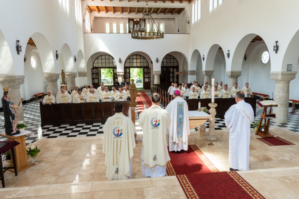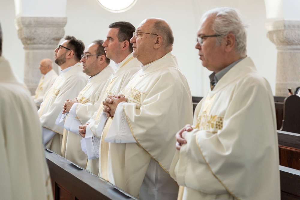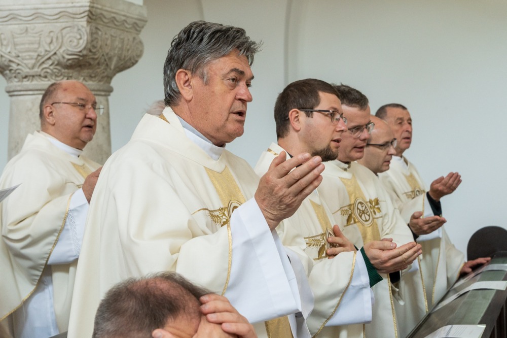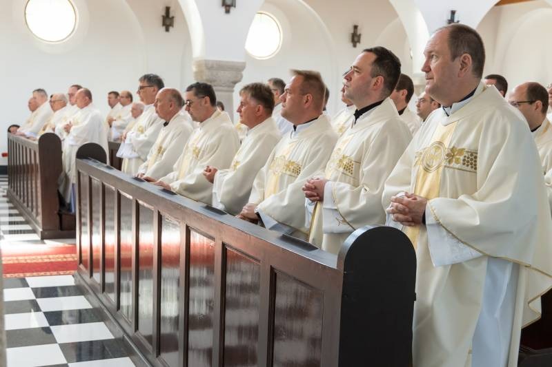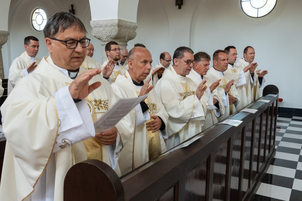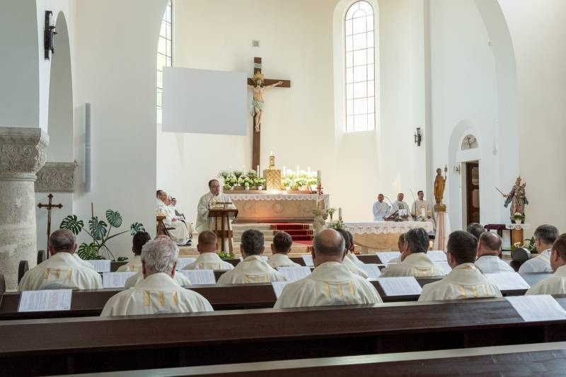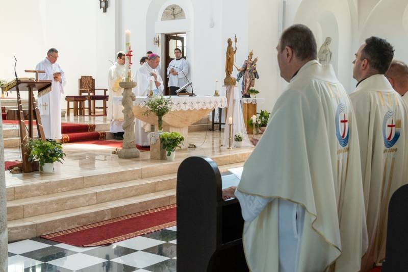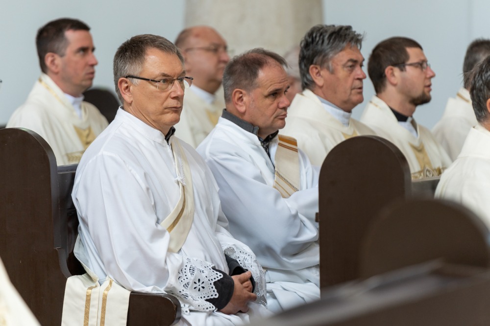 A találkozó szentmisével kezdődött a bátai bazilikában, melyben Felföldi László köszöntötte paptestvéreit. A püspök beszédében kiemelte, azért fontos ez a találkozás, mert a papok számára az ünnepek egyben minden alkalommal szolgálatot is jelentenek, mely – ahogy fogalmazott – képes megsemmisíteni az ünnepi érzést, hangulatot és élményt, ugyanis olyan erőfeszítést és odafigyelést igényel részükről, mely próbára teszi a szívet. Ezért szükségük van arra, hogy időnként egyszerűen csak jelen legyenek egy ünnepi találkozás alkalmán.