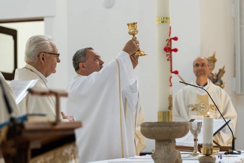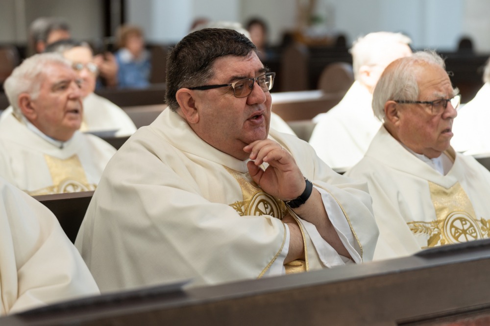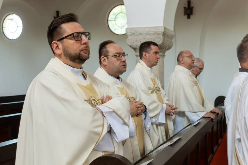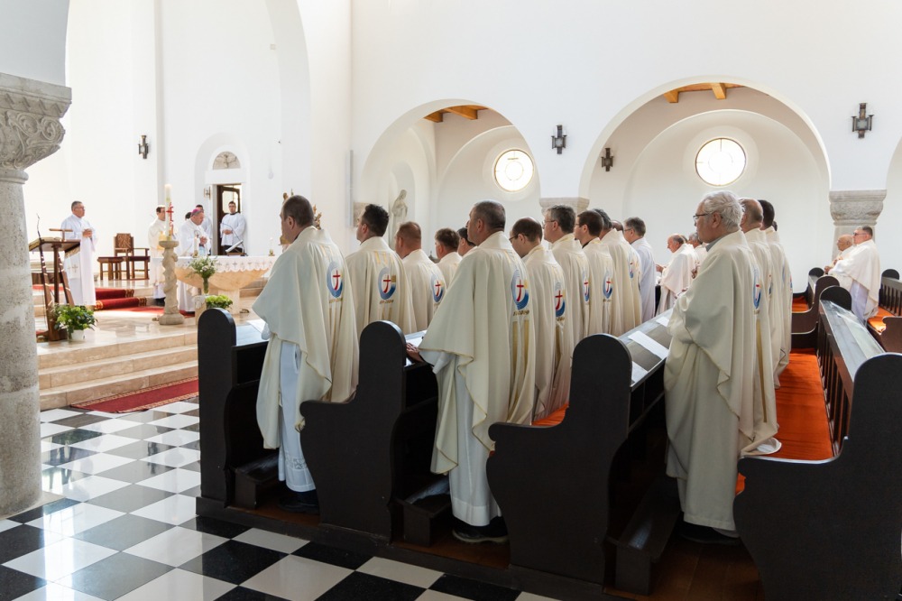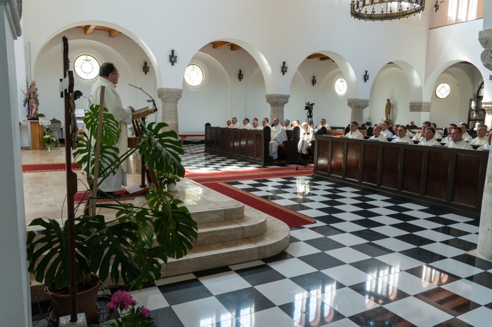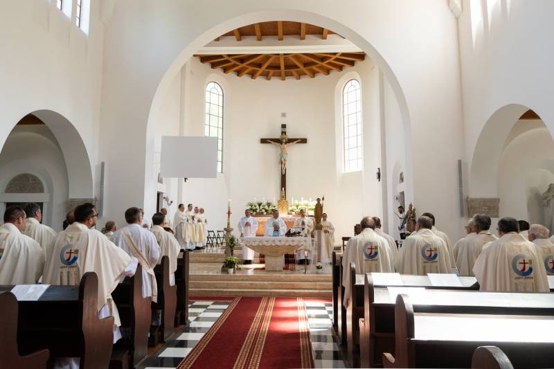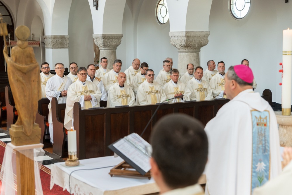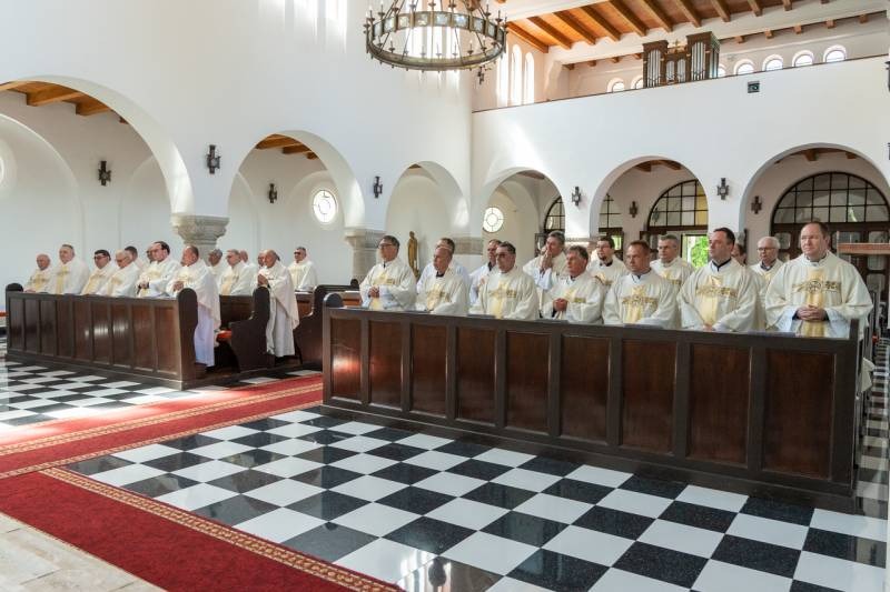 A találkozó szentmisével kezdődött a bátai bazilikában, melyben Felföldi László köszöntötte paptestvéreit. A püspök beszédében kiemelte, azért fontos ez a találkozás, mert a papok számára az ünnepek egyben minden alkalommal szolgálatot is jelentenek, mely – ahogy fogalmazott – képes megsemmisíteni az ünnepi érzést, hangulatot és élményt, ugyanis olyan erőfeszítést és odafigyelést igényel részükről, mely próbára teszi a szívet. Ezért szükségük van arra, hogy időnként egyszerűen csak jelen legyenek egy ünnepi találkozás alkalmán.