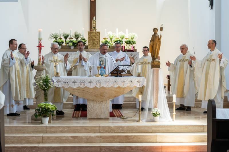 Több mint 40 éve, hogy az év egy napján papi zarándoklaton találkoznak egymással a Pécsi Egyházmegye papjai és diakónusai, hogy közösen adjanak hálát hivatásuk kegyelmeiért. Idén, május 27-én a bátai Szent Vér kegyhelyen tartották a hagyományos papi találkozót, melyen részt vett Felföldi László pécsi megyéspüspök és Mayer Mihály nyugalmazott püspök is.