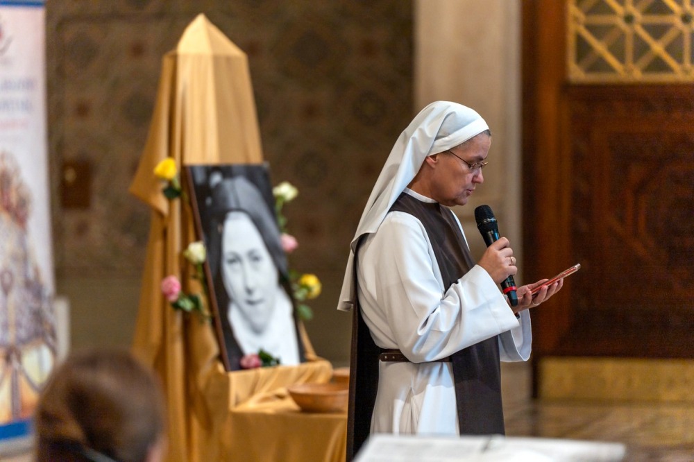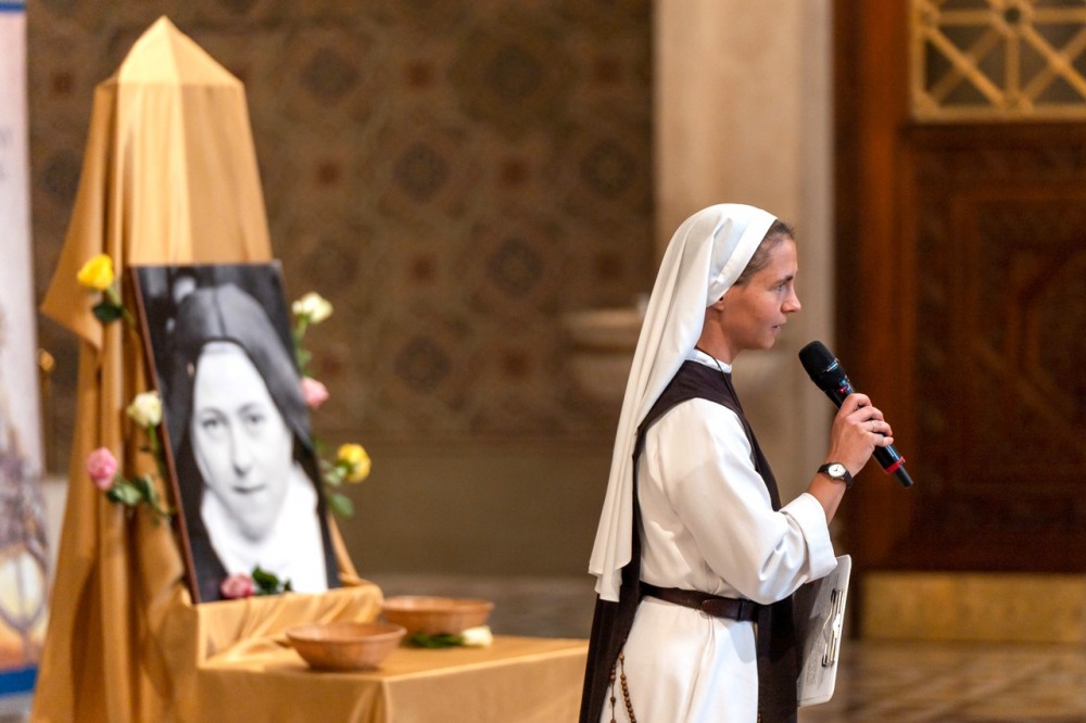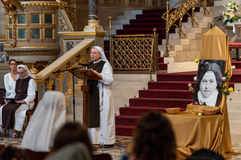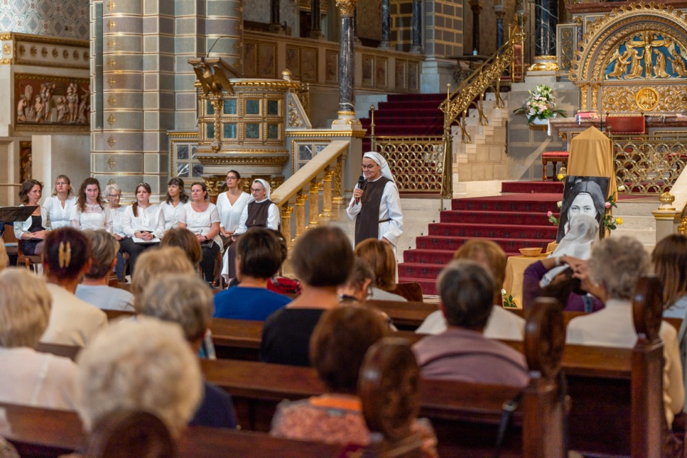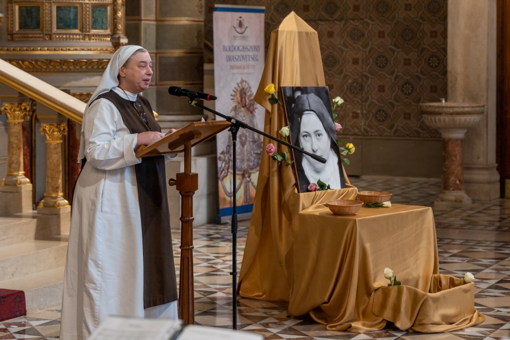 A folytatásban Csaba Veronika Mária, a Nyolc Boldogság Közösség homokkomáromi rendházából érkezett nővér élményszerű tanítását hallhatták a jelenlevők Kis Szent Teréz életéről és lelkiségéről a naplójából vett idézetekkel kiegészítve.