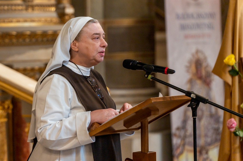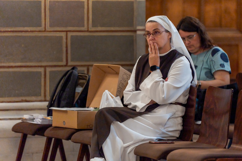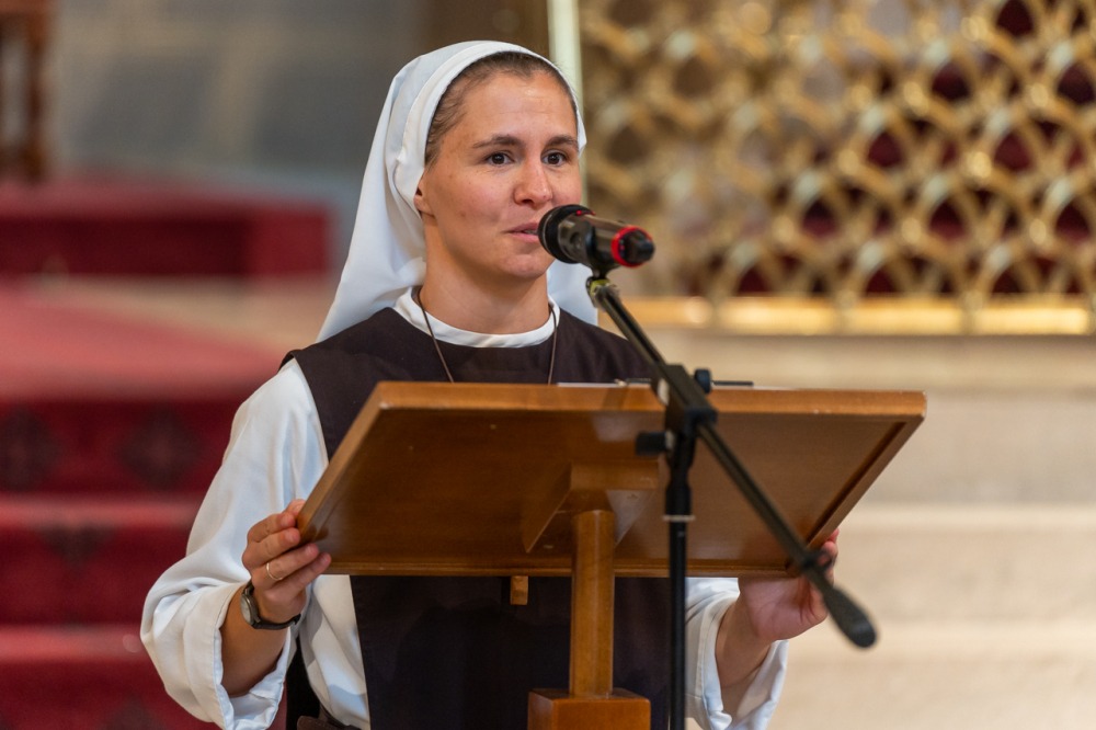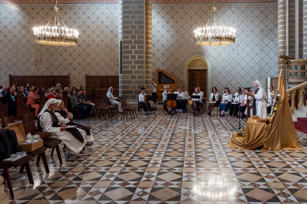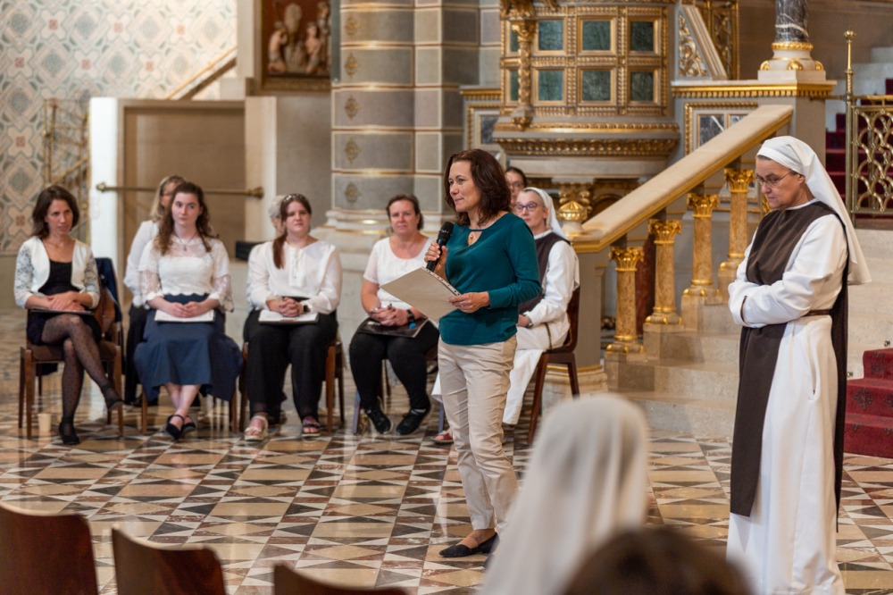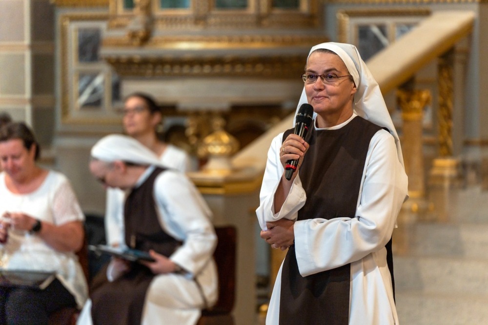 A folytatásban Csaba Veronika Mária, a Nyolc Boldogság Közösség homokkomáromi rendházából érkezett nővér élményszerű tanítását hallhatták a jelenlevők Kis Szent Teréz életéről és lelkiségéről a naplójából vett idézetekkel kiegészítve.