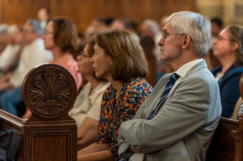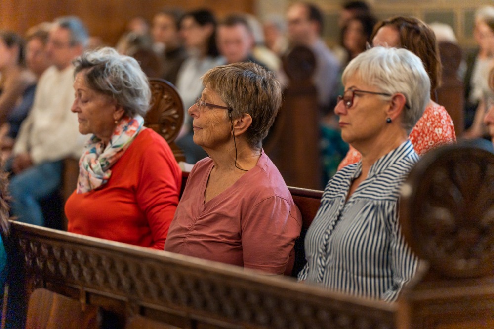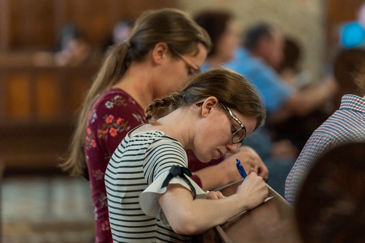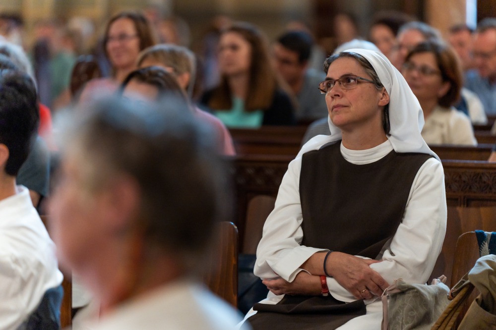 A tavalyi évhez hasonlóan idén is megtöltötték a székesegyházat a Pécsről és környékéről, Kaposvárról és Homokkomáromból érkezett felnőttek, fiatalok és gyermekek, akiket a Nyolc Boldogság Közösség pécsi alapítása képviseletében Valter Margit nővér köszöntött Lisieux-i Kis Szent Teréz virágokkal díszített portréja előtt.