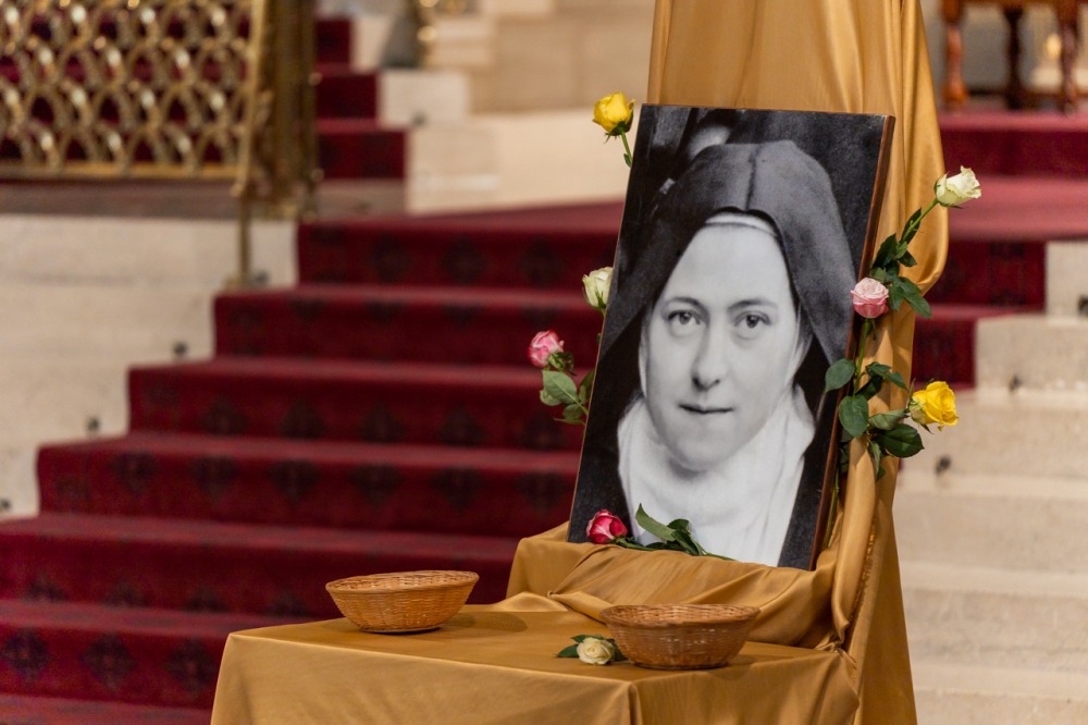 Margit nővér bevezetőjében a 150 évvel ezelőtt született Kis Szent Teréz emberi nagyságát méltatva kiemelte, noha Teréz 24 évet élt ezen a földön és soha nem hagyta el a Lisieux-i karmelita kolostor területét, ahova 15 évesen lépett be, Pius pápa mégis korunk legnagyobb szentjének nevezte. Már 1923-ban boldoggá, 1925-ben pedig szentté avatták. Szent II. János Pál pápa 1997-ben az egyháztanítók sorába iktatta. Szobra számos templomban megtalálható, ahol feszülettel, karmelita ruhában ábrázolják, rózsákat hintve – az imái hatására elnyert segítő kegyelem jelképeként.