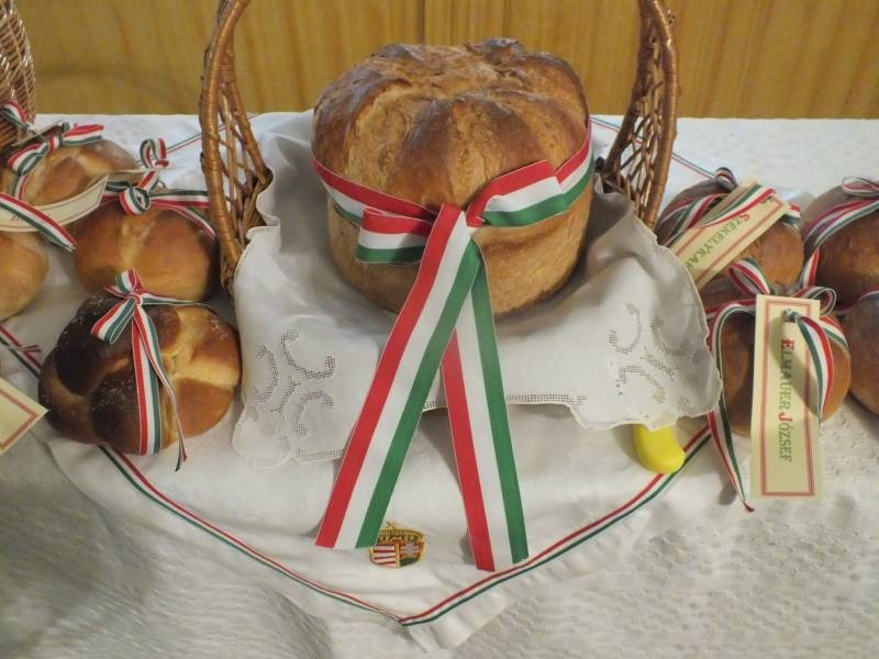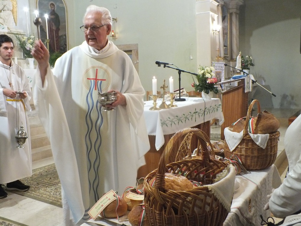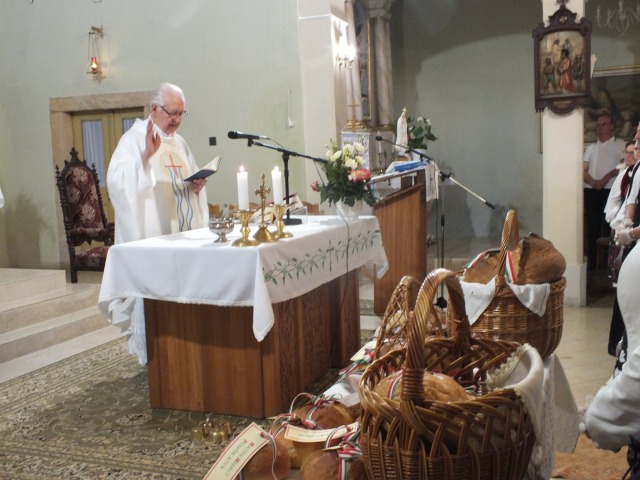A szentmise befejező szakaszában az új kenyér megáldását követőeSchellné Simcsik Orsolya polgármester szegte meg a kenyeret, majd a székely társulat és a német kórus tagjai osztották szét a hívek között a megszentelt, felszeletelt kenyeret. Jelképesen, mint Bibliában: „azután vette az öt kenyeret és a két halat, feltekintett az égre, megáldotta és megtörte a kenyereket, és a tanítványoknak adta, a tanítványok pedig a sokaságnak.” (Mt 14,13-21)
