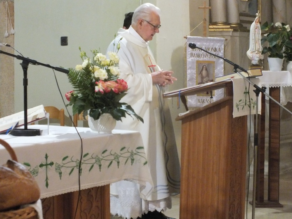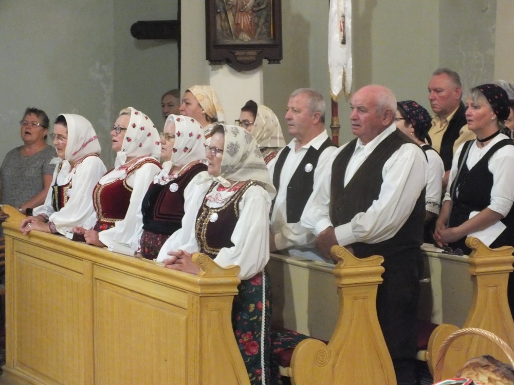 A szentmisét Mayer Mihály nyugalmazott püspök — aki nyolc éve szolgálja a kakasdi híveket — mutatta be. Áldja meg az Isten érte! Püspök atya a szentmise elején külön köszöntötte a Csíkfalváról (Erdély,) Deákiból (Felvidék), Radiborból (Németország) és a Székelykakasdról (Erdély) érkezett vendégeket és örömét fejezte ki, hogy sokan népviseletbe öltözve jelentek meg a templomban.