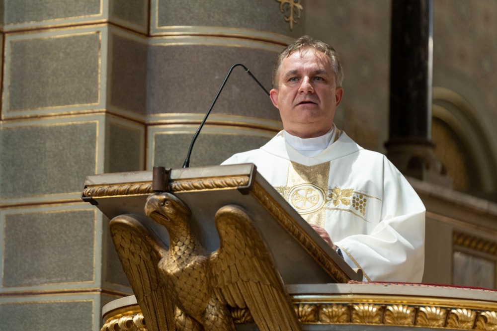 Dr. Hegedüs János a szentmise ezüstmisés szónoka szentbeszédében kiemelte, egyházmegyénk Szent István király általi alapításának 1016. évfordulója mélyebbre és korábbra vezet bennünket. Az ünnep valójában az alapítóra, Jézus Krisztusra mutat, hiszen az Üdvözítő rakta le az Egyház, benne a Pécsi Egyházmegye alapjait is.