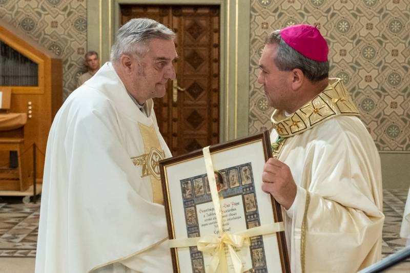 A Pécsi Egyházmegye hagyománya szerint minden évben augusztus 23-án, az egyházmegye alapításának évfordulóján köszöntik a pappá szentelésük valamely kiemelkedő jubileumát ünneplő lelkipásztorokat. 2025-ben öt egyházmegyés papnak adta át a pápai áldást tartalmazó vatikáni dokumentumot Felföldi László pécsi megyéspüspök a papság jelenlétében a pécsi székesegyházban celebrált ünnepi szentmisén.