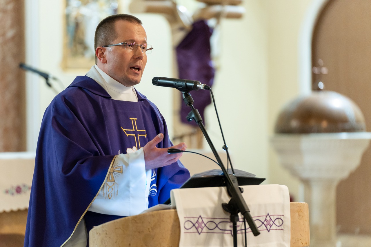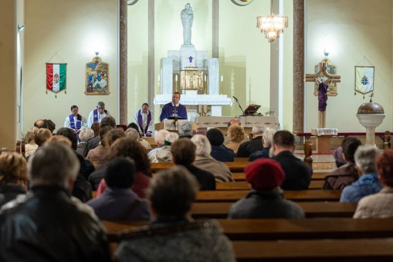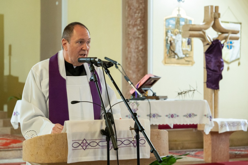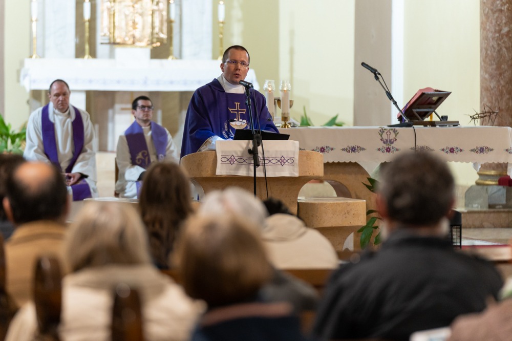 A lelki délutánt záró szentmisében Máger Róbert püspöki irodaigazgató, a székesegyház plébánosa lelkigyakorlatos szentbeszédében arra figyelmeztetett, hogy nagyheti utunk során kísérjük végig az Urat, legyünk mellette, ezáltal befogadva a nagyhét mondanivalóját, melynek történésein keresztül eljutunk a húsvéthoz, Jézus Krisztus föltámadásához.