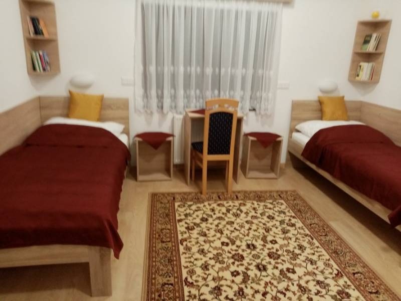 Egy egyágyas, két kétágyas, két háromágyas és szükség esetén egy négyágyas szoba áll a vendégek rendelkezésére. A házhoz társalgó, melegítőkonyha, klasszikus kis ebédlő és 50 fő befogadására alkalmas, modern technikával felszerelt rendezvényterem tartozik. A szomszédos bazilikában lehetőség van egyéni és csoportos imára a bazilika liturgikus rendjén kívül is.