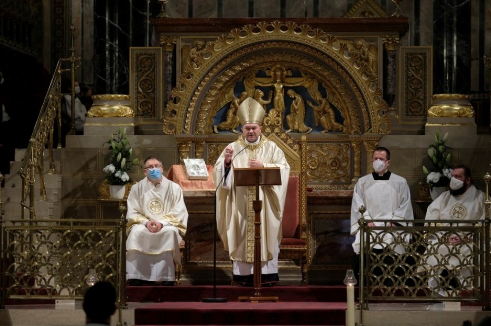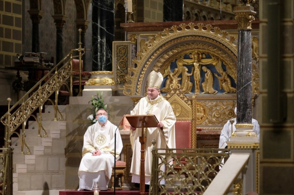 A főpásztor szentbeszédében az ünnep titkáról elmélkedett, mely – mint fogalmazott – Isten és ember találkozásának, a szeretet különleges megjelenésének a titka, mely megrendíti a szívet. Egy diakónusszentelési ünnepen a lelkipásztor ránéz a saját élethivatására, hiszen minden pap és minden püspök diakónus is egyben. Márpedig annyiban vagyunk papok és püspökök – hangsúlyozta -, amennyiben diakónusok is tudunk lenni, hisz ez az alap, amire építünk, ami egész hivatásunk lényegét adja.