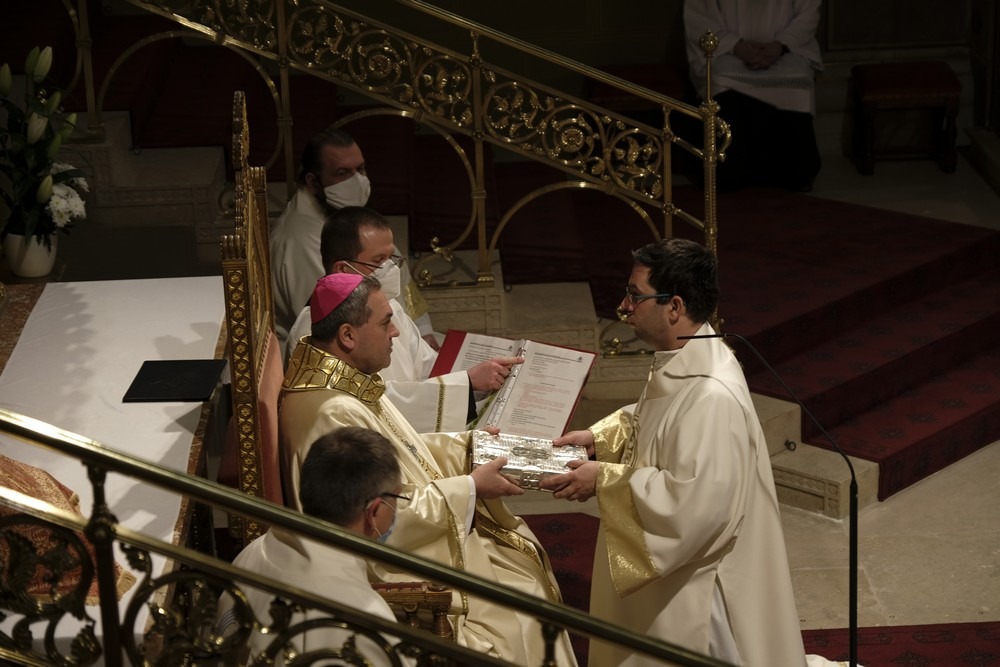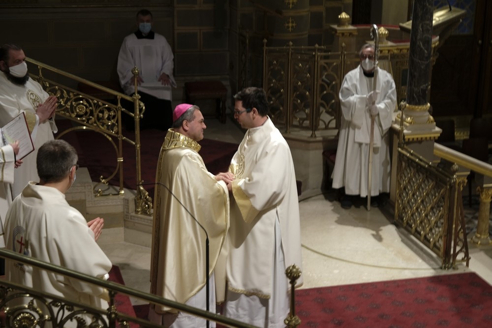 „Kívánom, hogy ebben a szolgálatban valóban megtaláld életednek örömét, megtaláld közöttünk a papi közösség biztonságát és megtaláld ennek a sokszor nagyon nehéz munka gyümölcsében az élet békéjét és szeretetét” – mondta a főpásztor.