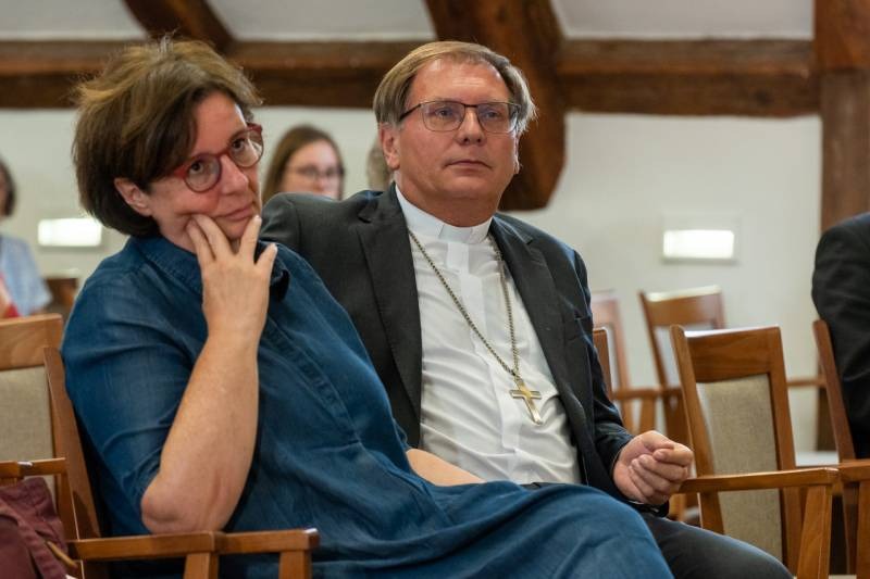 A nagy érdeklődéssel várt rendezvényen jelen volt Felföldi László pécsi megyéspüspök, a sorozat állandó házigazdája, valamint munkatársaival a rendezvény időpontjában Pécsett tartózkodó Pál József Csaba temesvári megyéspüspök, aki szinkrontolmácsként az előadás román nyelvre fordításában működött közre. Az érdeklődők soraiban helyet foglalt Manhardtné Szlovák Katalin pécsi evangélikus lelkész is.