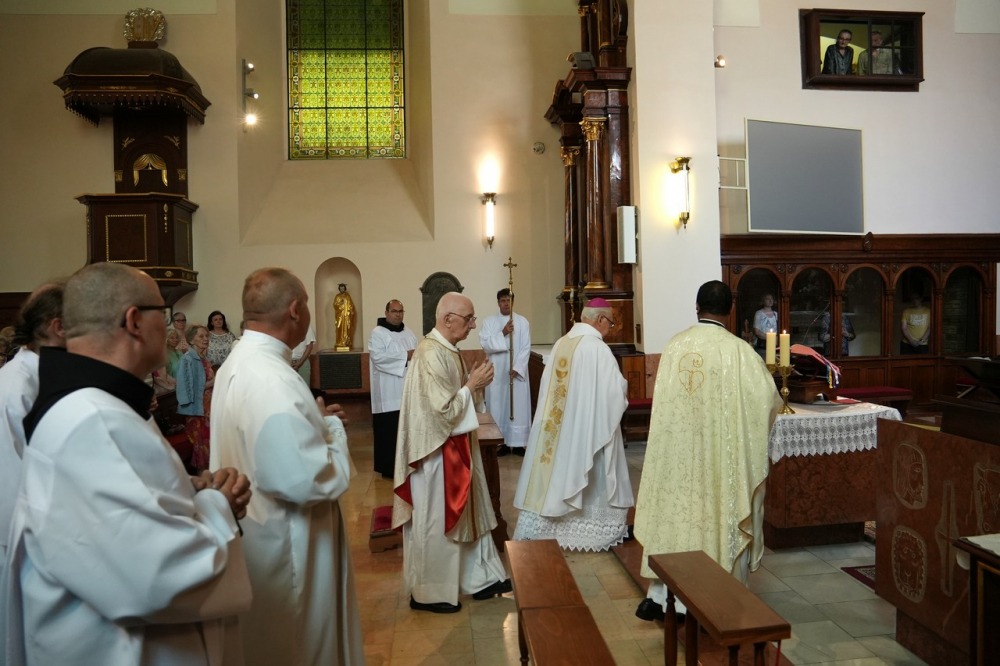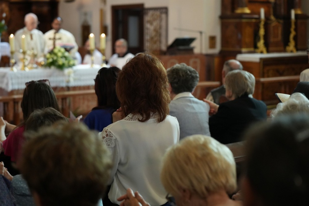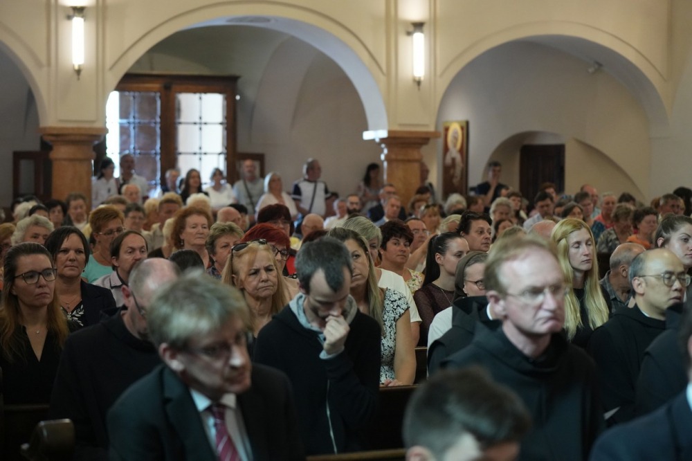 A hatvanéves papi jubileumra, a gyémántmisére zsúfolásig megtelt a Betegápoló Irgalmasrend Szent Sebestyén-temploma. A Pécs közelében működő szerzetes rendházak, a magyarszéki karmeliták és a kozármislenyi betegápoló ferences nővérek is képviseltették magukat a jeles alkalmon.