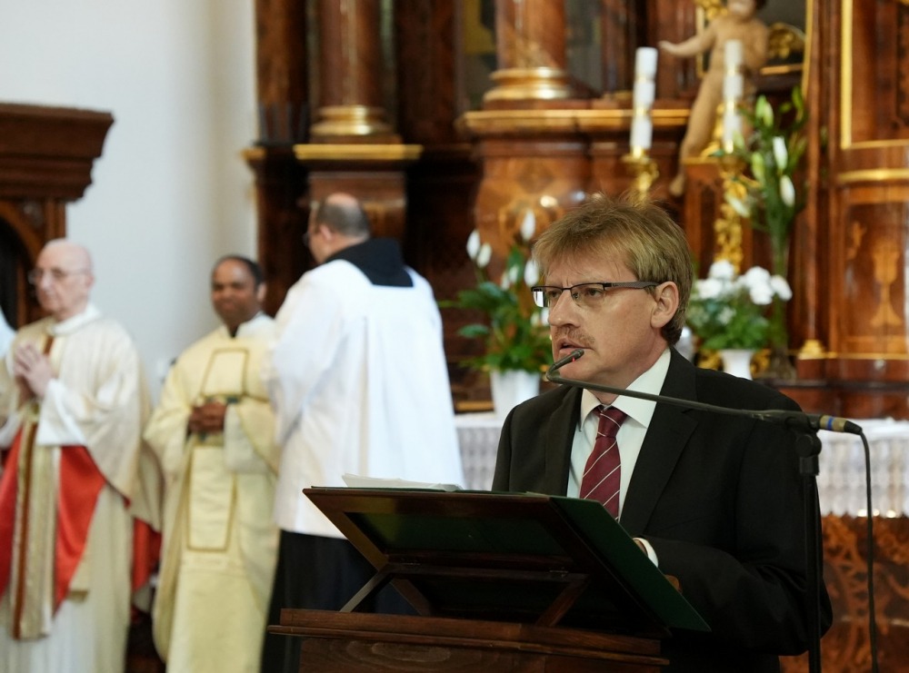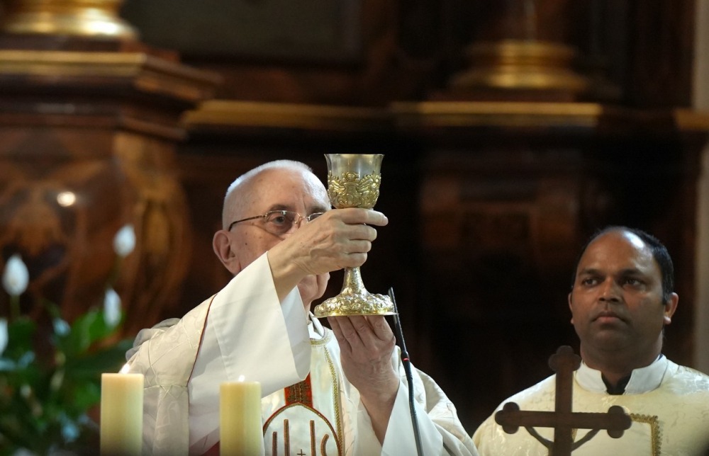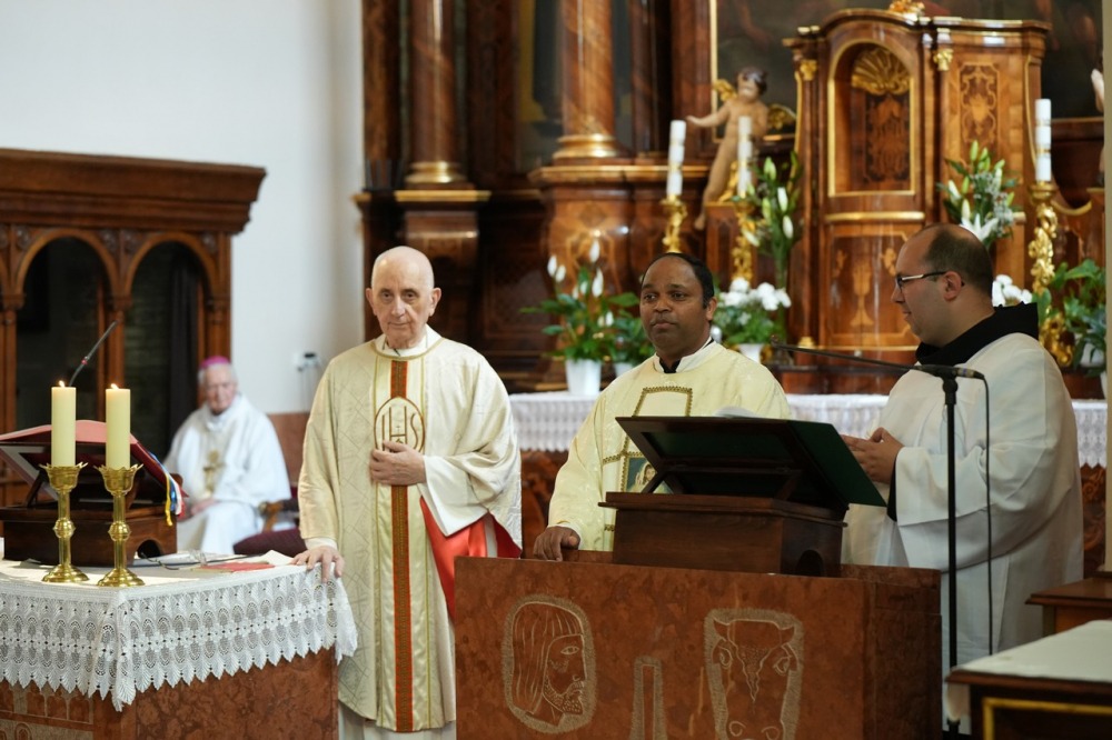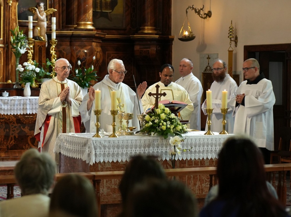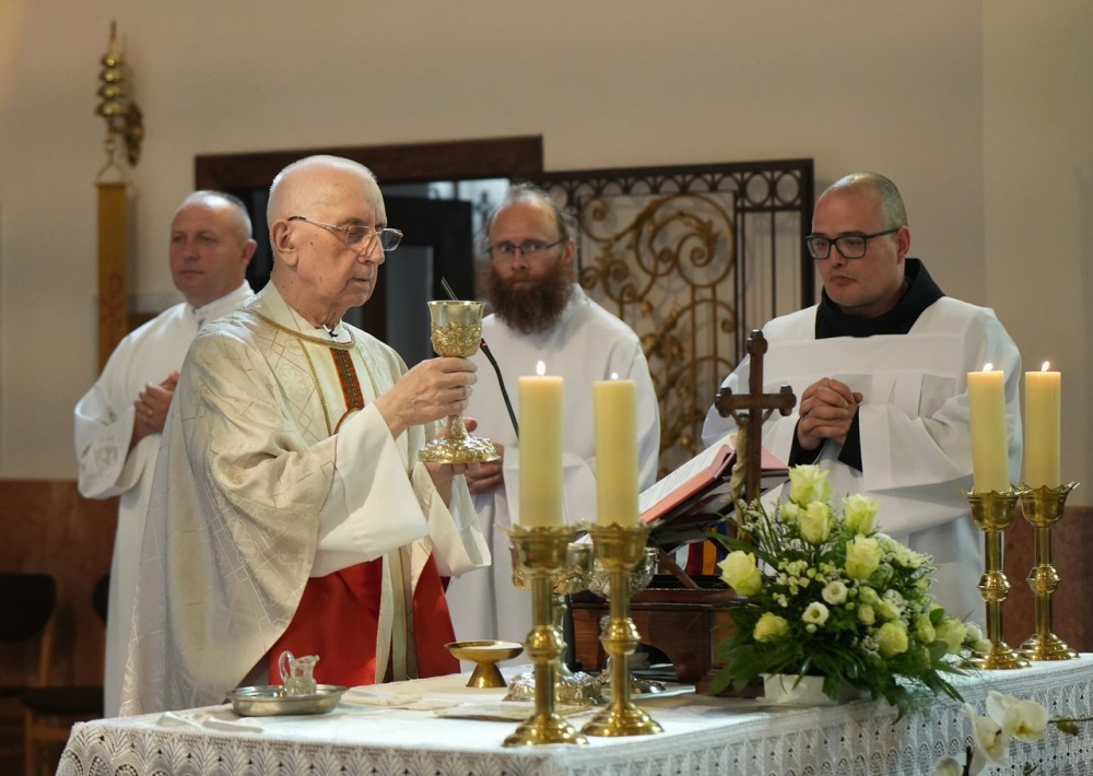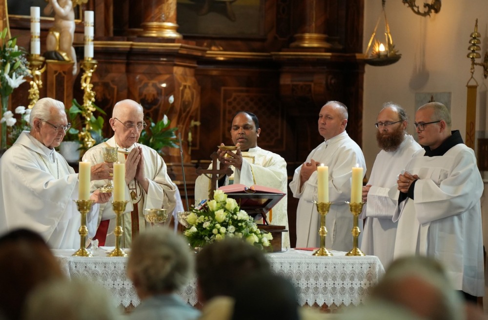 Az Eucharisztia asztalánál végzett papi szolgálat egészen különlegesen kapcsolja be a papot a kegyelem működésébe. Igazi papi feladat és öröm az Oltáriszentségben jelenlevő Krisztust rajongva, dicsőítve szolgálni! „Mindenért legyen Istennek hála!” – zárta beszédét a gyémántmisés szerzetespap.