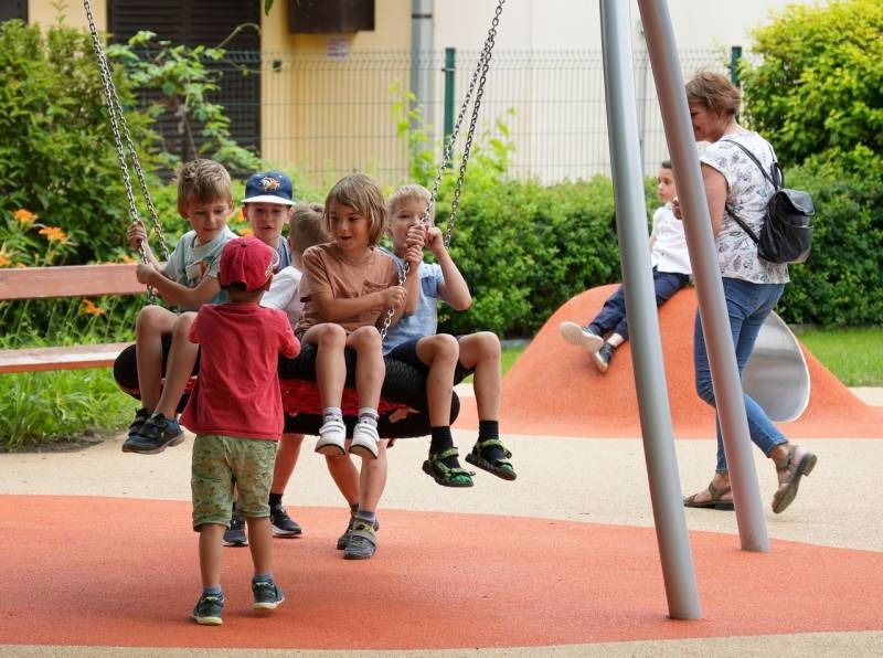 Báráczné Szántó Mariann óvodavezető köszöntőjében elmondta, a másfél éven át folyó munkálatok eredményeként minden évszakban és időjárási körülmények között használható, a gyermekek számára szabad mozgástevékenységet biztosító korszerű játszóterülettel gyarapodott az óvoda udvara.