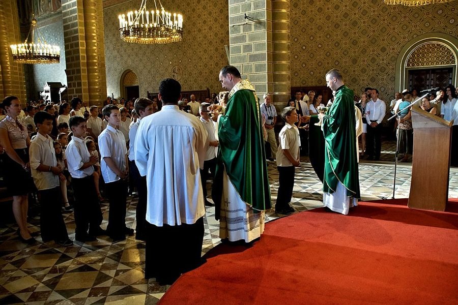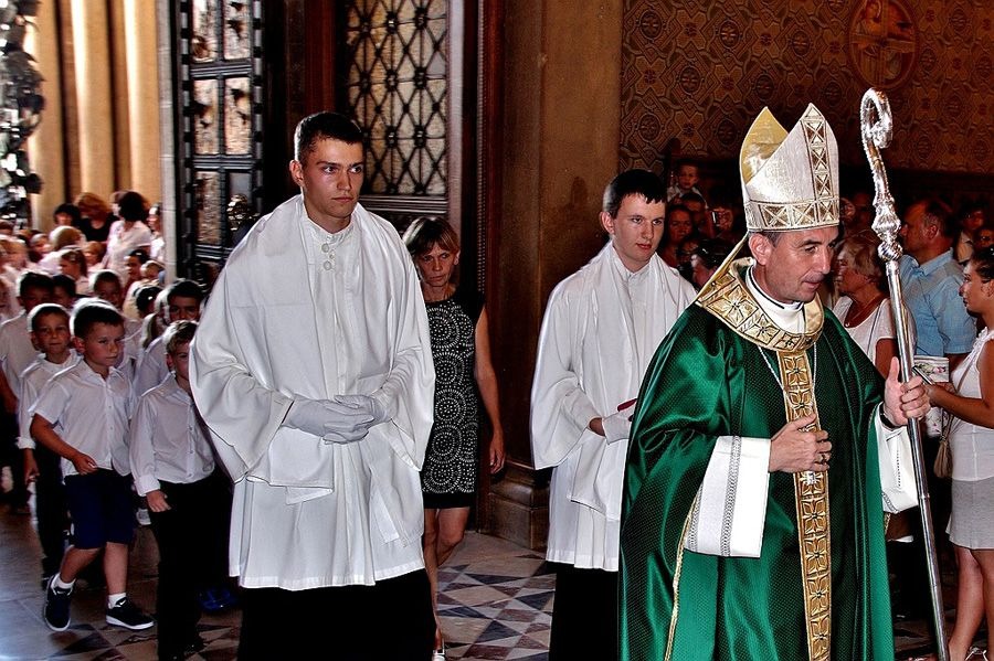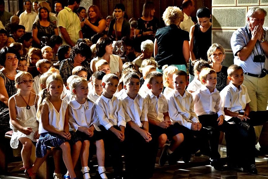 A hagyományok szerint szentmisével kezdődött a Szent Mór Katolikus Iskolaközpont 2015/16-os tanéve. Udvardy György pécsi megyéspüspök vezette be a közel 60 új első évfolyamos gyereket a székesegyházba. Az iskola létszáma idén meghaladja a 640 főt.