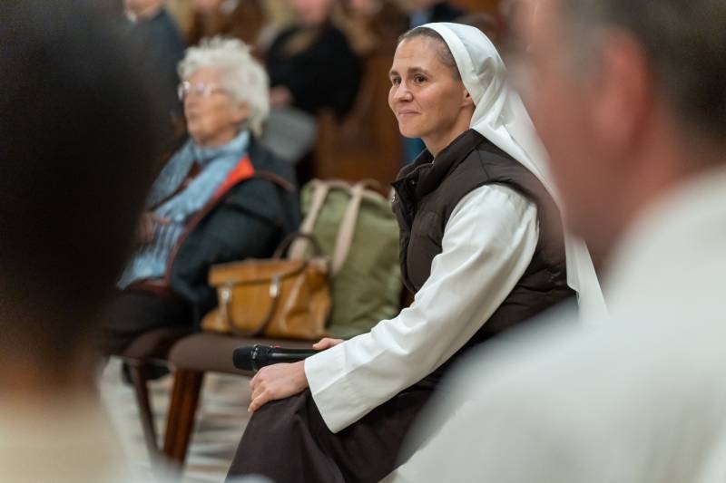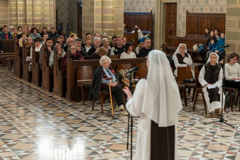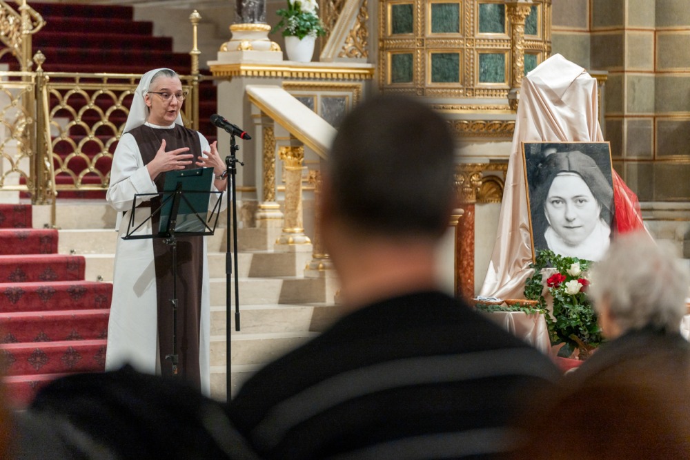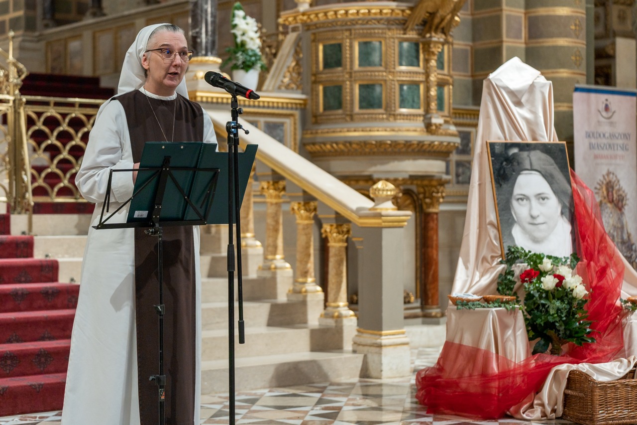A folytatásban Mikovics Krisztina nővér beszélt Kis Szent Teréz életéről és lelkiségéről a naplójából vett idézetekkel kiegészítve.
