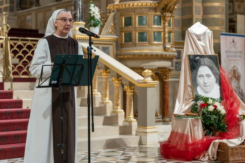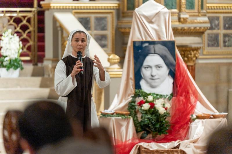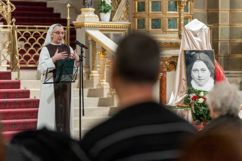 Margit nővér bevezetőjében a 150 évvel ezelőtt született Kis Szent Teréz emberi nagyságát méltatva kiemelte, noha Teréz mindössze 24 évet élt, Pius pápa mégis korunk legnagyobb szentjének nevezte. 1923-ban boldoggá, 1925-ben pedig szentté avatták.