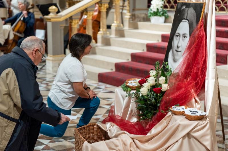 A Nyolc Boldogság Közösség pécsi szerzetesnővérei által szervezett imaesten immár harmadik alkalommal kérték Kis Szent Teréz közbenjárását október 27-én a pécsi székesegyházban. A fiatalon meghalt Teréz, amikor a földi élettől búcsúzott, azt ígérte, hogy ha halála után a mennybe kerül, akkor a kegyelem rózsaesőjét fogja hullatni minden hozzá fohászkodóra, és szüntelenül közbenjár mindnyájunk üdvössége érdekében.