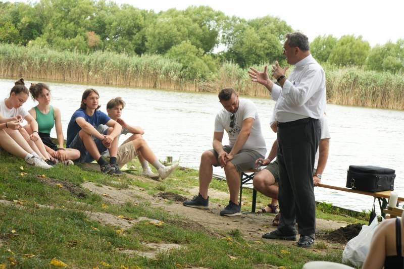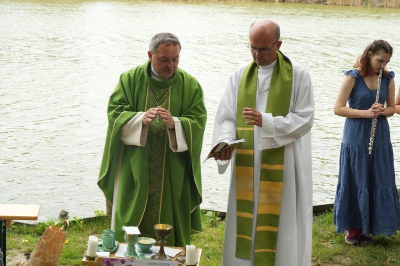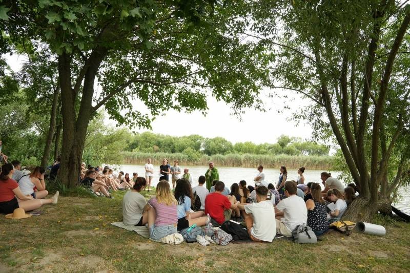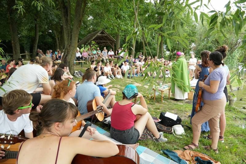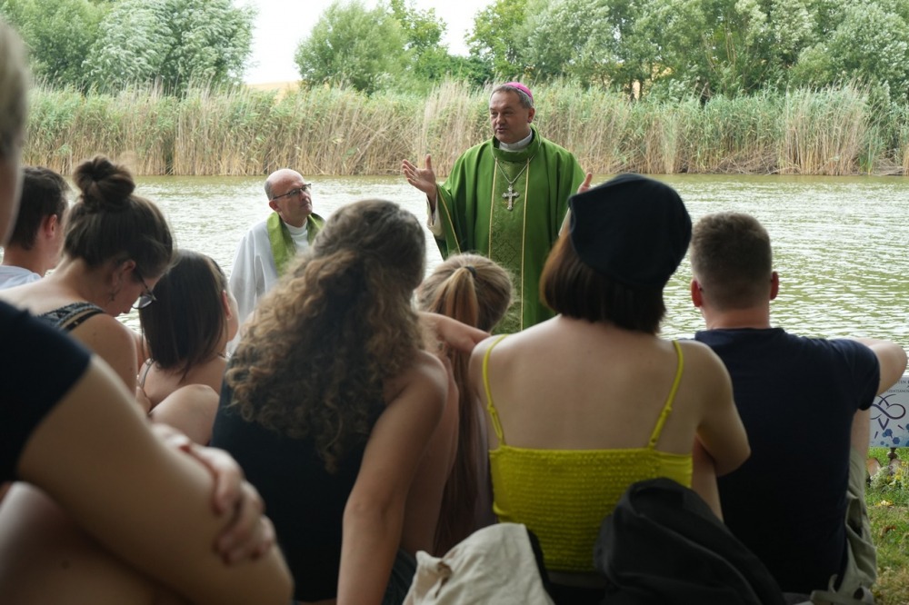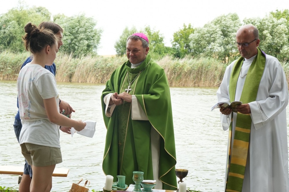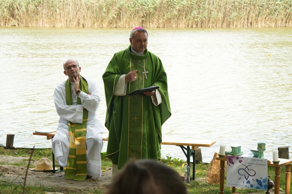 A festői szépségű töttösi tóparton ünnepelt tábori szentmisében Felföldi László püspök korunk társadalmának a fiatalok formálódó értékrendjét erősen befolyásoló és uniformizáló, a hagyományos családi értékeket eltipró és semmibe vevő hatásairól beszélt közvetlen stílusban a fiatalokhoz, a fiatalok nyelvén.