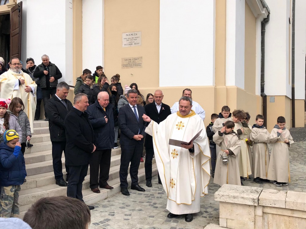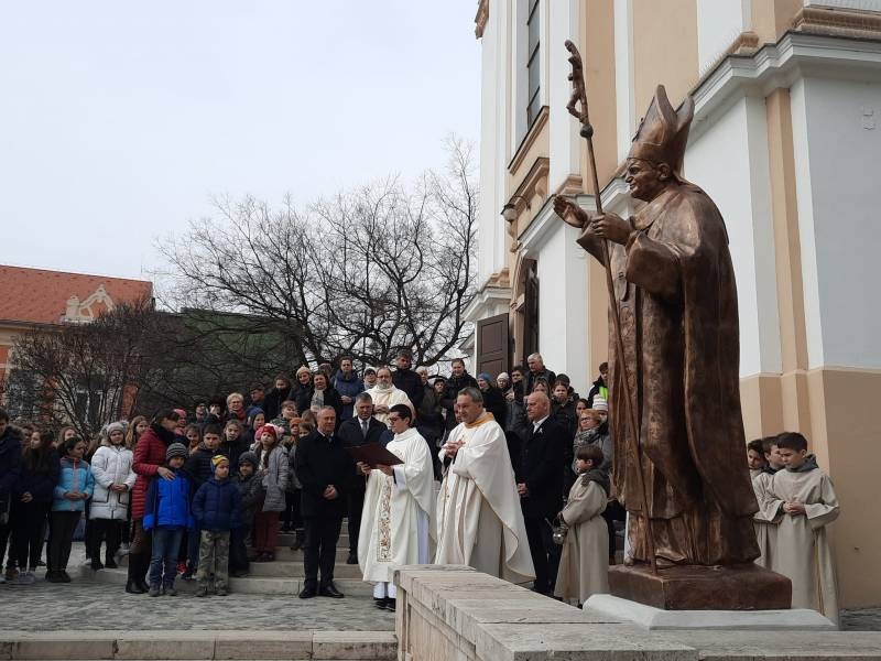 Szentmisét mutatott be, majd szobrot és iskolát áldott meg Felföldi László püspök Szekszárdon