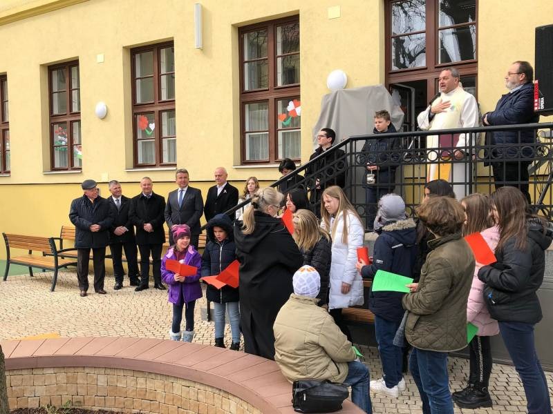 A program a Szent József Iskolaközpont épületének ünnepélyes megáldásával folytatódott. A részben európai uniós forrásokból, részben a Pécsi Egyházmegye saját forrásaiból finanszírozott mintegy 400 millió forint értékű munkálatok még 2021-ben fejeződtek be, azonban a vírushelyzet miatt a főpásztori áldásra ezidáig nem kerülhetett sor.