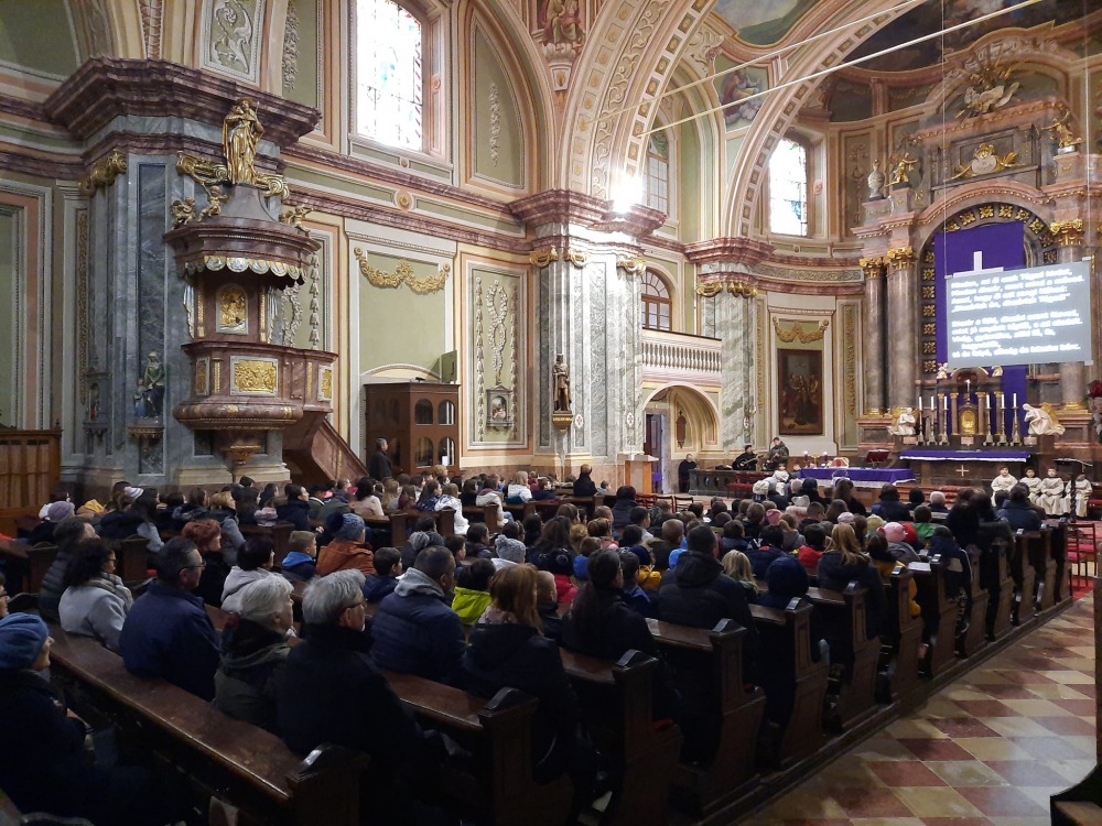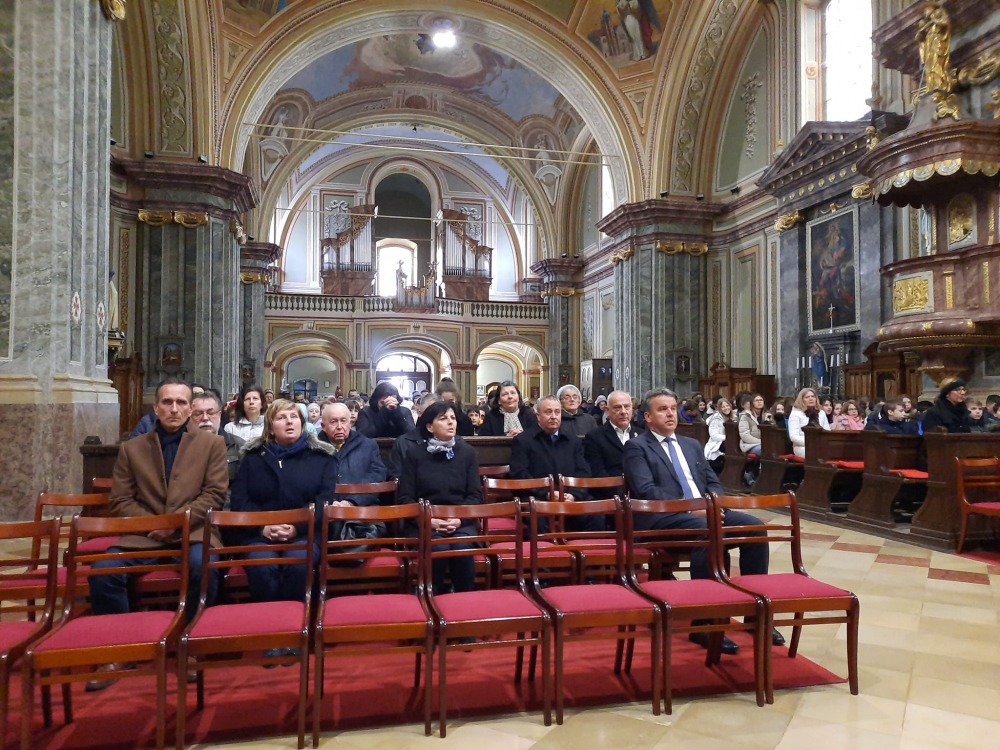 Az iskolaközpont ünnepe az Urunk Mennybemenetele templomban bemutatott szentmisével kezdődött, melyet Felföldi László megyéspüspök celebrált, koncelebrált Petkó Tamás plébános, Molnár Erik káplán és Priskin Zsolt diakónus.
