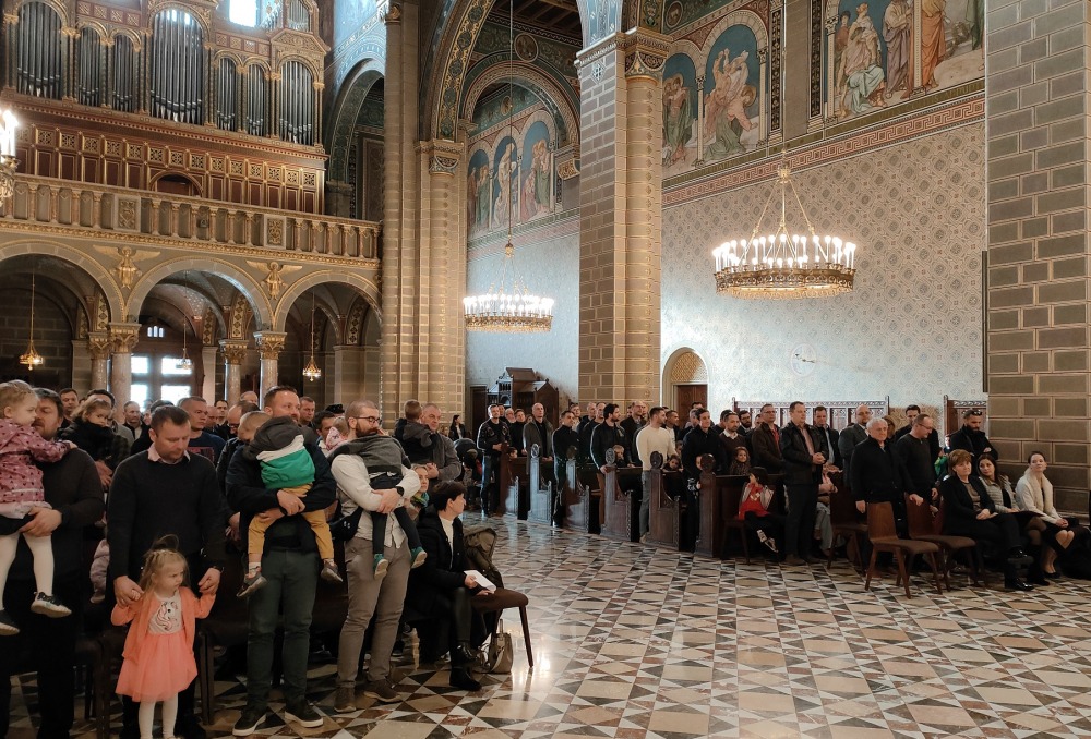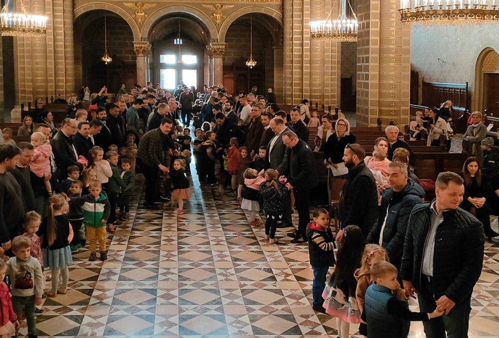 Zárásként az édesapák – gyermekeik kezét fogva, hosszan kígyózó sorokban – áldást adtak családjaikra Józsi atya vezetésével.
