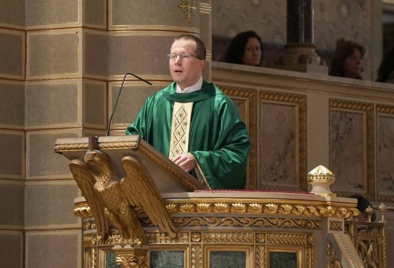 A szentmise homíliájában Máger Róbert püspöki irodaigazgató Pál apostol rómaikhoz írt szavait értelmezte az ünneplésre összegyűlt katekétáknak: a szolgálatra meghívott embert kötelezi az Isten, mint Meghívója iránti hűség és az evangélium örömhírének felismert hiánya a világban. Ami a katekéta öröme és erőforrása a munkában, az egyben a terhe és küzdelme is.
