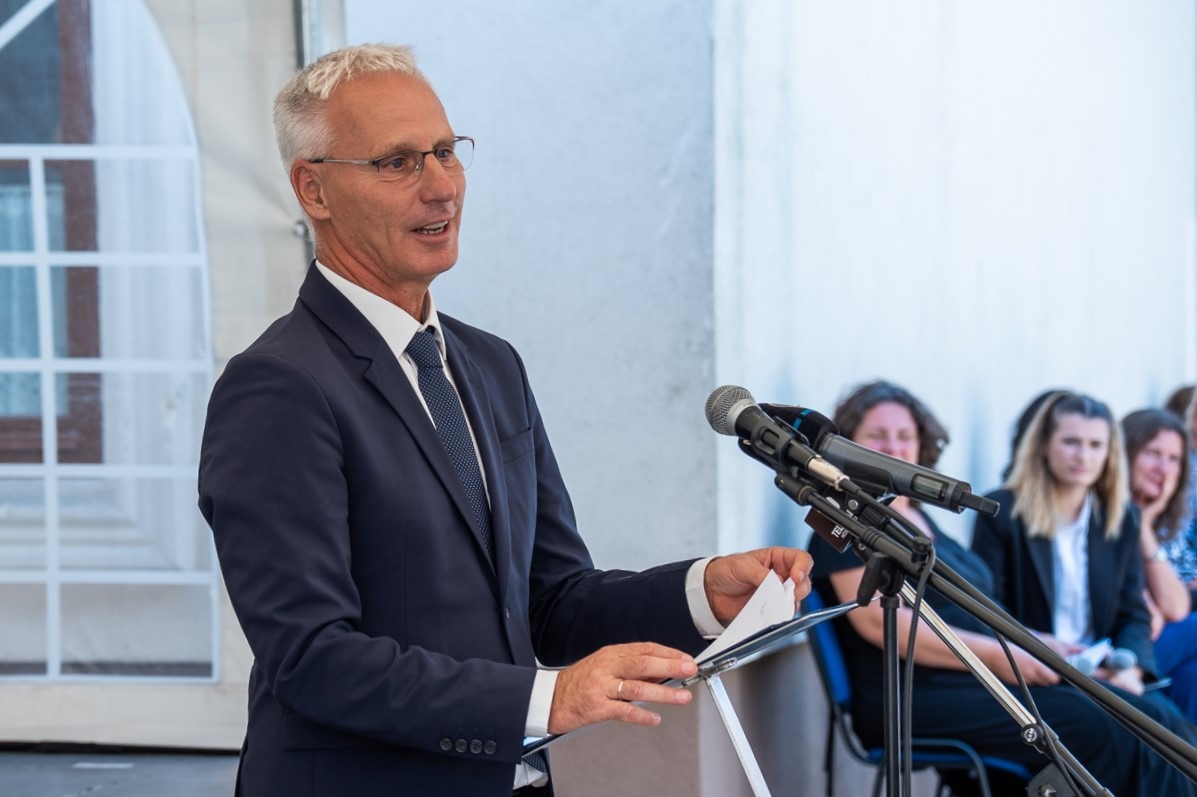 Az ünnepi köszöntők sorát Felföldi László pécsi püspök zárta, aki beszédében rámutatott, hogy egy társadalom, egy közösség életértéke egyetlen módon mérhető le, ahogyan a jövőhöz viszonyul, ahhoz a nemzedékhez, akiké és akiknek építjük a jövőt. Ebben az oktatás jelenti az összetartó, civilizált társadalom alapját, mely képes reményt, jólétet és fejlődést teremteni.