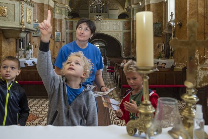 A vetélkedő egyes állomásain különleges feladatokkal találkoztak a gyerekek. A „Kincskeresés a templomban” című állomáson fényképek alapján kellett beazonosítani a templomban található képeket, falfestményeket, zászlókat és egyéb eszközöket.
