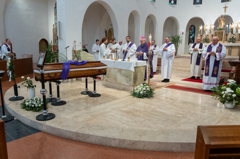 A 2025. október 14-én elhunyt lelkipásztor lelki üdvéért szülővárosában, Mohácson, a Magyarok Nagyasszonya-templomban október 27-én celebrált gyászmisét Mayer Mihály nyugalmazott püspök az egyházmegye papjaival, a szentbeszédben Rostás Jenő István faddi plébános búcsúzott paptestvérétől, akit a helyi temetőben helyeztek örök nyugalomra.