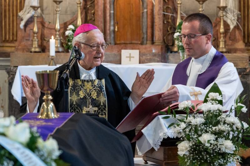 Az elhunyt lelkipásztor lelki üdvéért július 30-án a szentdénesi Szent Dénes-templomban celebrált engesztelő szentmisét Mayer Mihály nyugalmazott püspök, koncelebrált Felföldi László pécsi megyéspüspök, Bíró László nyugalmazott tábori püspök és a Pécsi Egyházmegye megjelent papjai, majd az elhunytat annak rokonságával és a hívek közösségével kísérték végső nyughelyére a település temetőjében található családi sírhelyre.